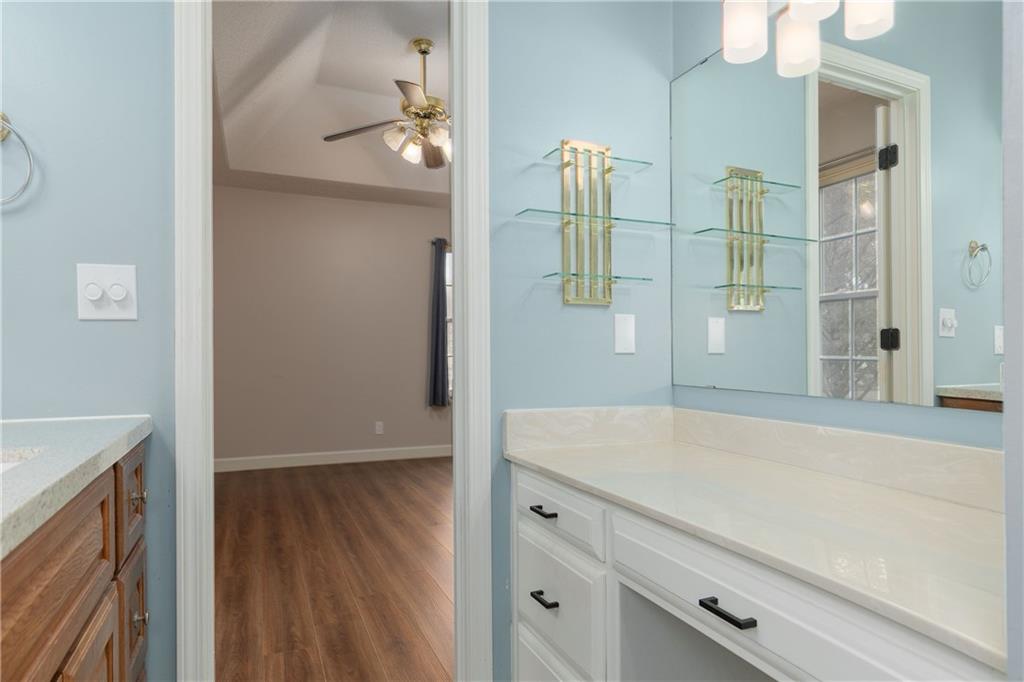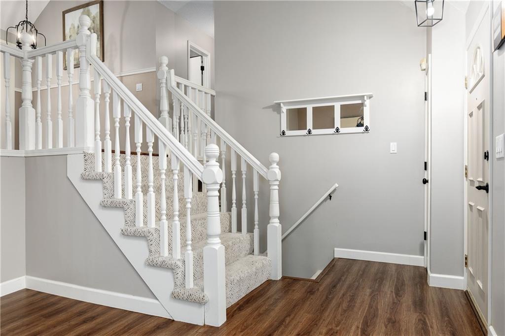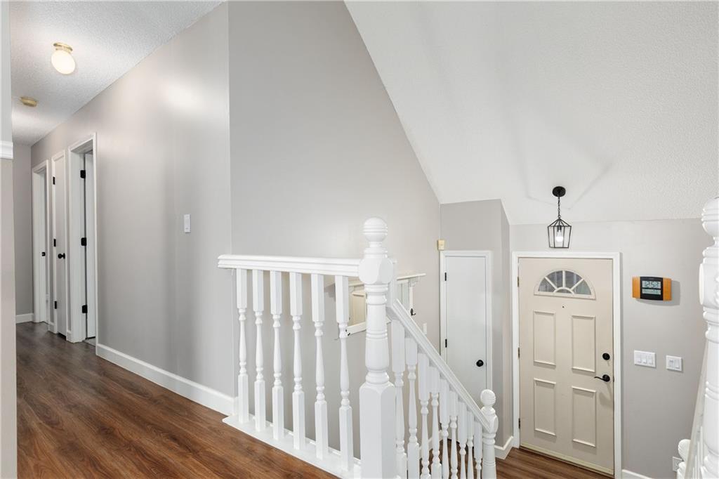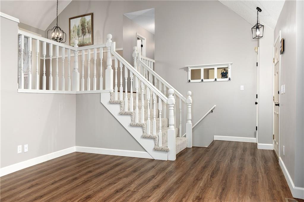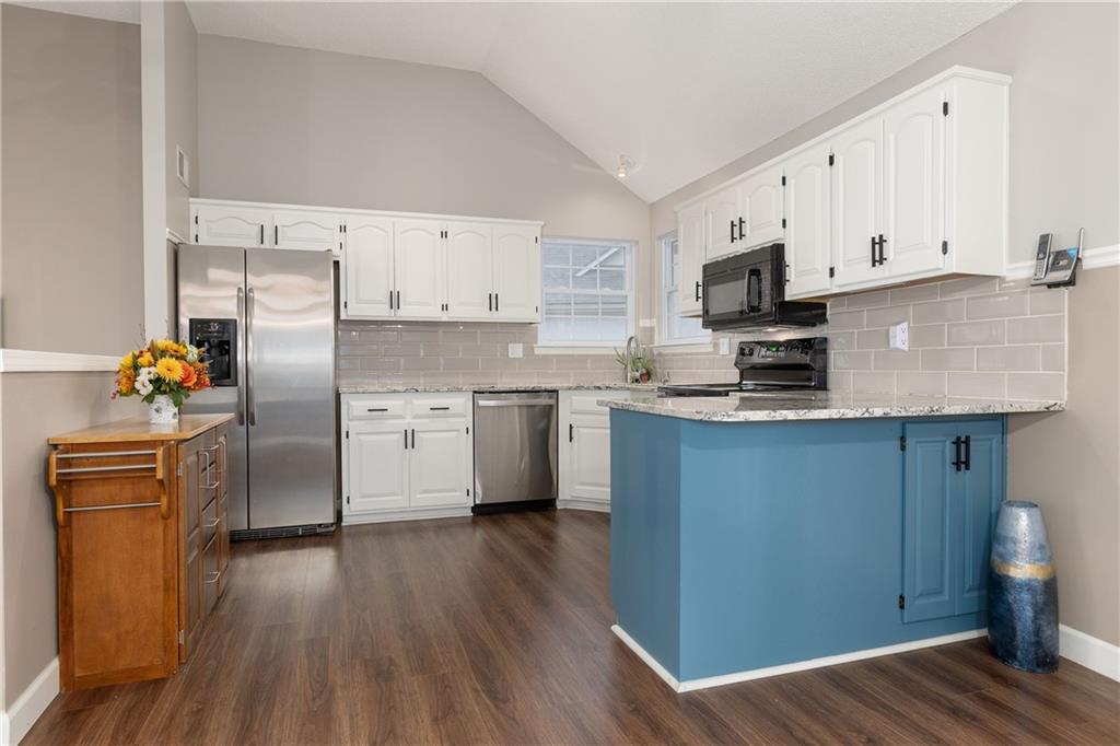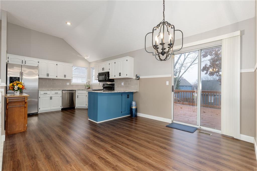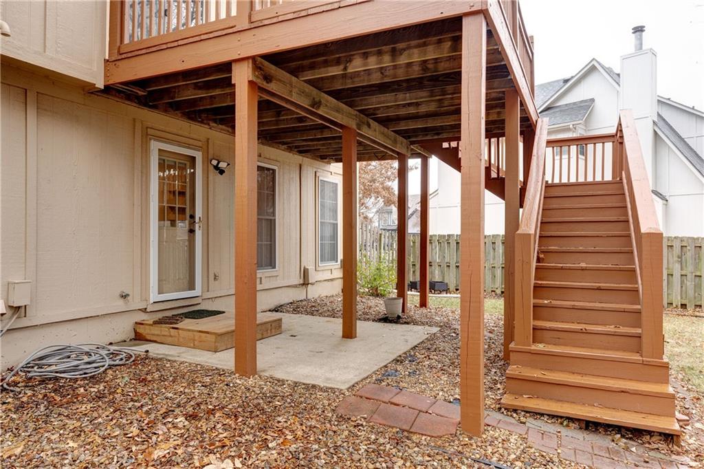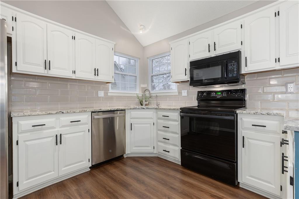 Located on a cul-de-sac street with several updates! Stunning vaulted entry* LVP hardwood flooring throughout the main living areas* Spacious updated kitchen with enameled kitchen cabinets & granite counters* New hardware & fixtures*Newer bedroom carpet* Oversized back deck shaded by mature trees overlooking the fully fenced backyard* Newer driveway with added 3 car parking* Additional parking access to backyard with 30 amp plug for Rv's* Newer windows* Deep garage with extra room for large vehicles & custom built in storage areas* New bluetooth silent garage door opener* Extra insulation added for energy efficiency* Lower lever family room with its own half bath & walk out access to the backyard* Close access to nearby amenities & part of the award winning Blue Valley School district!