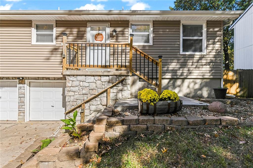 This darling Blue Springs raised ranch is cute as a button and loaded with great features. Freshly updated kitchen with new LVP flooring, painted cabinets and new granite countertops are just the start. Both bathrooms have also had recent renovations, new LVP flooring in all bedrooms, updated lighting and main level carpet just 2 years old. Finished lower level with additional rec or office space. Outside you will find an entertaining paradise with 2-tiered deck, pergola that stays with the home, plus patio. Don't miss the additional storage under the deck and the storage shed stays, too. Fenced yard offers plenty of space for kids or pets to play. Vinyl windows and siding make exterior maintenance a breeze. The convenient location of this home puts you just minutes from shopping and highway access. Two blocks from William Bryant elementary and a stone's throw from Blue Springs South High School and YMCA.