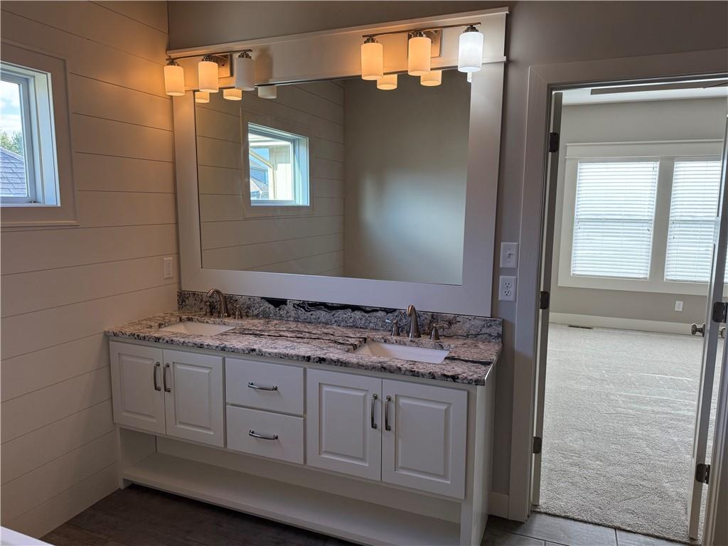 1.5 story with a walk-out basement. Kitchen is complete with quartz countertops, walk in pantry and a large island. Main level owner's suite features custom tiled walk-in shower, double vanity, separate soaker tub and access to the laundry room. Main level flex room could be home office or guest bedroom. 3 additional bedrooms upstairs and 2 bathrooms. Large covered deck and fenced yard.