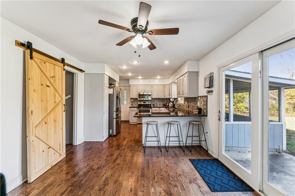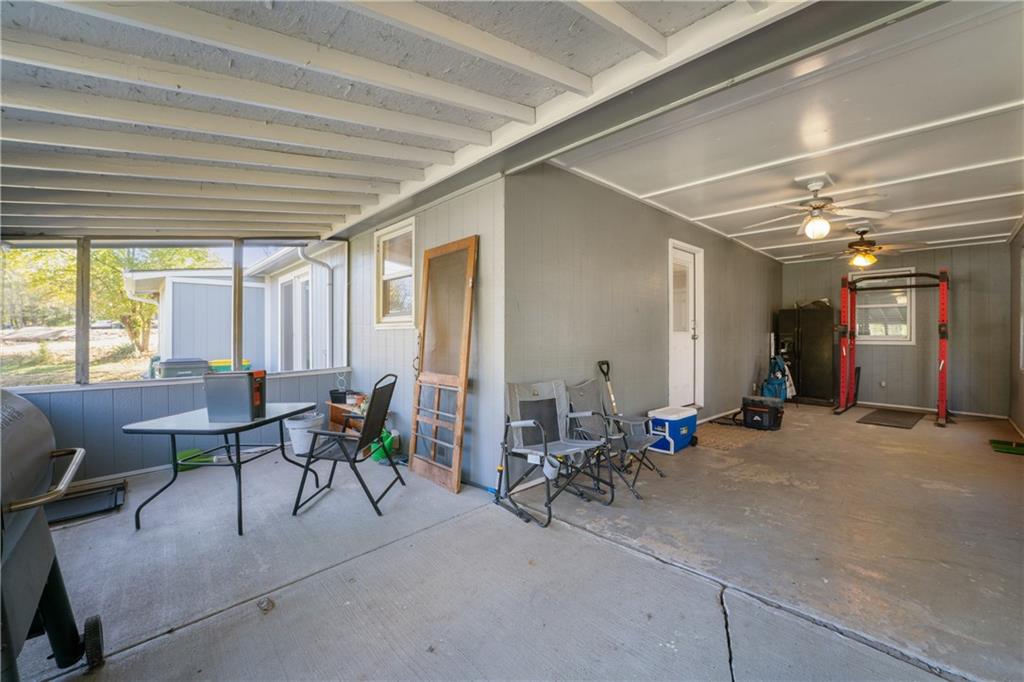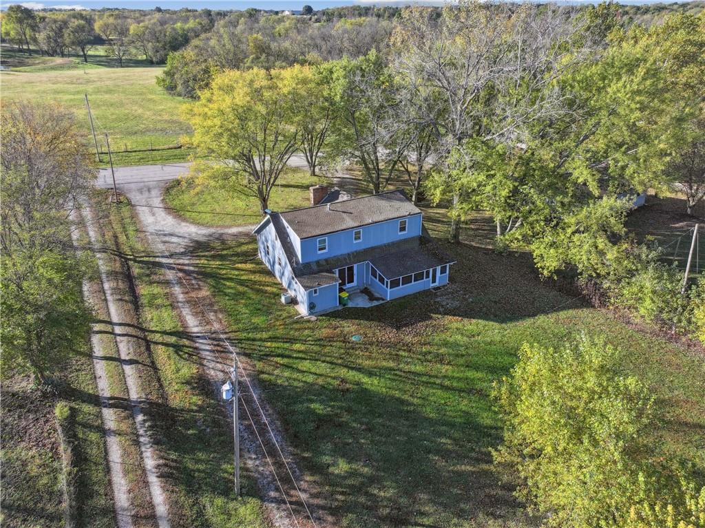 Amazing MOVE in ready acreage home!! You can not find a home in Johnson County on almost 5 acres at this SMOKING HOT price. This home features a Main Floor Primary Suite and Main floor Laundry!! True one floor living if needed. Home was remodeled a couple years ago and its amazing!! Family room has beautiful fireplace, Vaulted ceilings and beautiful hardwood floors. Formal Dining room open to family room area its HUGE for all your family dinners. Kitchen is perfect for all your entertaining needs, granite, tons of cabinets, Large eat in area also! Upstairs features 2 HUGE bedrooms and full bath. Both bedrooms have MASSIVE walk in closets. Back of the house has a large covered/screened patio that wraps around the home. Outbuilding has enough room to park 3 cars or tons of space for all your projects. Acreage has lots of trees and Openings thru out. Country living is ready for you!