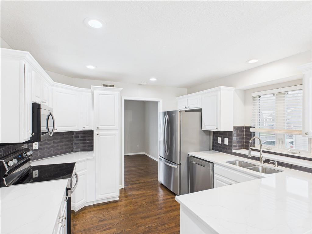 0.6 mi to Blue & Grey Park • Nearby Butterfly Trail and Community Center • Fenced backyard built for entertaining • Easy access to I-70 and local shops • This split-entry home in Grain Valley offers natural light and openness in a functional layout with approximately 2,283 square feet of finished living space. The vaulted living room features a gas fireplace and open view into the eat-in kitchen with solid-surface counters and ample cabinetry. A spacious primary suite provides dual sinks and a walk-in closet, while two additional bedrooms, a full bath and laundry complete the upper level. The finished lower level adds a flexible recreation area or home-office option plus half bath. Outdoor living extends to a fully fenced yard with deck and patio space ideal for gatherings, gardening, or relaxing evenings. The property sits on roughly 0.21 acres, includes an attached deep set two-car garage ample for storage and workbenches. Located less than 1 mile from the Grain Valley Community Center, Price Chopper Grocery, and Valley Coffee Co., with easy routes to Blue Springs and Kansas City via I-70. Nearby destinations include Monkey Mountain Sports Complex, Grain Valley Fishing Pond, and Burr Oak Woods Conservation Area. A versatile floor plan and entertainer-friendly outdoor space make this home a strong match for buyers seeking convenient access to parks, recreation, and local amenities within a vibrant Grain Valley community. **Pool and pool deck scheduled to be removed soon, back deck scheduled to be power washed and handrail replaced soon.