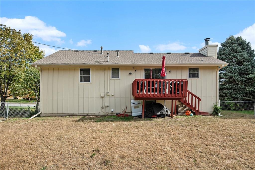 Welcome to this beautiful Rolling Meadows neighborhood of Leavenworth! Step inside to a large, light-filled living room with vaulted ceilings, creating an open and inviting feel. Kitchen with tile countertops opens to dining room and features pantry, plus new dishwasher, sink and cooktop with double oven. Three comfortable bedrooms on the upper level offer flexibility for sleeping, office space, or guests. The primary suite features private bath, a walk in closet and updated shower. An additional updated shower in the hall bathroom. The finished basement provides a second living space—ideal for a second family room, play area, home gym, or media room, plus a fireplace, half bath and 4th bedroom. Enjoy outdoor living in the fenced backyard with mature trees, offering both shade and privacy. Whether relaxing, gardening, or entertaining, this yard is ready for you. New carpet in living room, upper level bedrooms and stairs, Newer roof, gutters, front door, storm door, garage openers, and garage doors add peace of mind and low-maintenance ownership. Bonus upgraded electrical panel to 200 amp and new water softener, plus water heater with expansion tank. Extra deep garage with side exterior door, perfect for storage or workshop. Nestled on a cul-de-sac, near local schools, parks, shopping, Fort Leavenworth, and highway access, this home delivers convenience and comfort in one package. Schedule to see today!