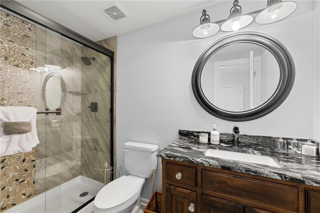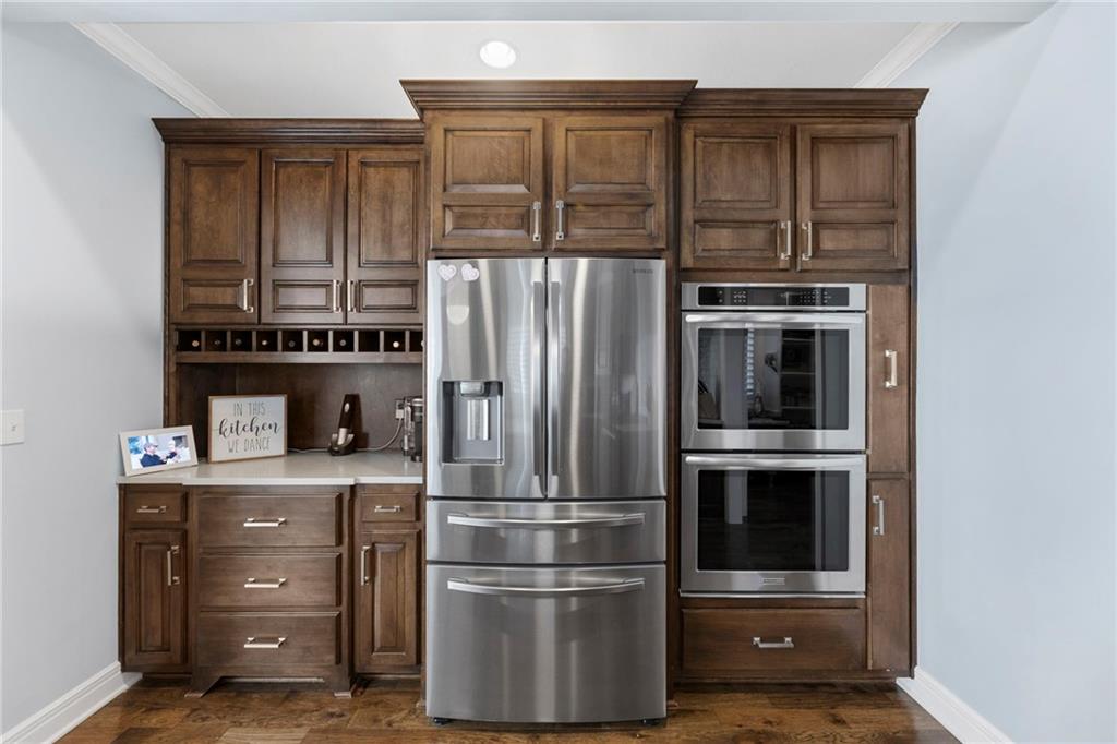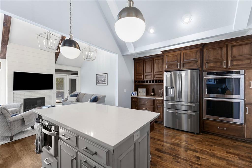 Built in 2015, this beautifully appointed 2-story home in coveted Mission Pines combines timeless design with effortless living. Enjoy a gourmet kitchen featuring custom cabinetry, Thermador gas range, double ovens, quartz countertops, a butler’s bar, and a large center island perfect for entertaining. A spacious walk-in pantry with a built-in desk and first-floor laundry with custom built-ins adds convenience to daily life. The main-level primary suite offers hickory hardwood floors, vaulted ceilings, a generous walk-in closet, and a spa-like bath with soaking tub and separate walk-in shower. Upstairs, you’ll find a loft overlooking the main floor, 1 bedroom, full bath, and a 5th non-conforming bedroom or flex space. The daylight lower level features a second family room with a wet bar, 2 bedrooms, each with walk-in closets, and a full bath, totaling 4 bedrooms + 5th non-conforming and 4.5 baths. Every bath showcases quartz countertops and designer tile, complemented by upgraded lighting throughout. Outdoor living is equally impressive, relax on the screened porch, unwind on the composite deck, or gather around the private stone patio within the fenced yard. The oversized two-car garage includes a convenient side door to the backyard. Mission Pines is a hidden gem quietly tucked away, yet within walking distance to The Village, Corinth Shops, and Meadowbrook Park. The HOA provides lawn care, snow removal, and water for the sprinkler system, allowing true lock-and-leave peace of mind. This rare opportunity offers refined living in one of Mission’s most desirable maintenance-provided communities. Don’t miss it.
