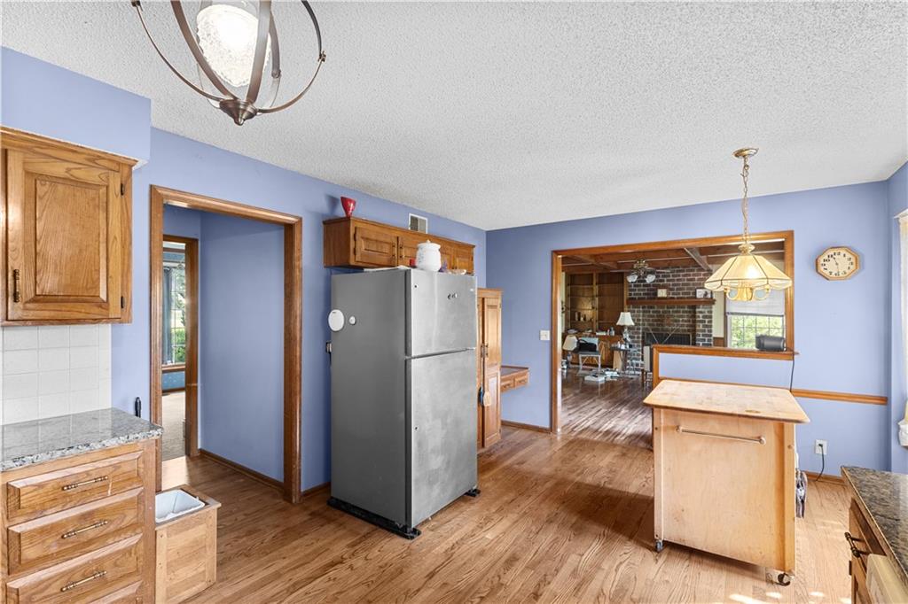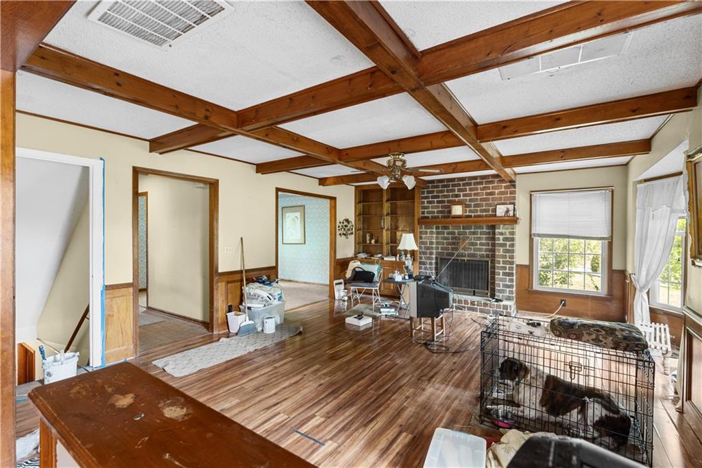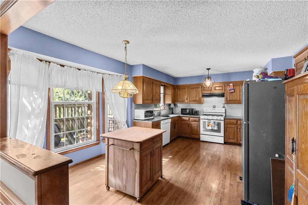 TAKE A LOOK AT THIS PRICE IMPROVEMENT! Priced NOW at $475,000, this classic 4-bedroom, 2.5-bath residence is a rare opportunity to secure an incredible 1.1-acre lot in a highly sought-after Johnson County location. This home has been cherished by its single owner since it was built and is now ready for a new chapter with a buyer eager to infuse their personal style and modern finishes. The main level features a large, bright living room boasting beautiful wood beamed ceilings, a cozy brick fireplace, and built-in shelving, creating a naturally warm gathering space. The kitchen currently showcases classic wood cabinetry and wood floors, with an adjacent breakfast nook featuring a charming window view of the backyard. Imagine the possibilities of transforming this space into a modern gourmet kitchen! Additional interior spaces include a formal dining area and a front room ready to become a sophisticated office or cozy den. A second-floor level laundry room and an attached two-car garage add to the home's practical appeal. The true gem of this property is the stunning 1.1-acre lot that offers unparalleled privacy and space. The backyard is a serene, park-like setting anchored by mature shade trees and features five producing apple trees—a delightful bonus for any homeowner! This generous acreage is perfect for creating the ultimate outdoor entertainment space, adding a pool, or simply enjoying the quiet, nature-filled surroundings. The Opportunity You've Been Waiting For With its superb location, desirable acreage, and solid foundation, this property is perfectly positioned for an equity-building renovation. Bring your vision to life and design the Johnson County home of your dreams, exactly to your taste! Don't miss the chance to own a substantial piece of Johnson County real estate ready for your custom touch. Schedule your private showing today and start planning your perfect home!