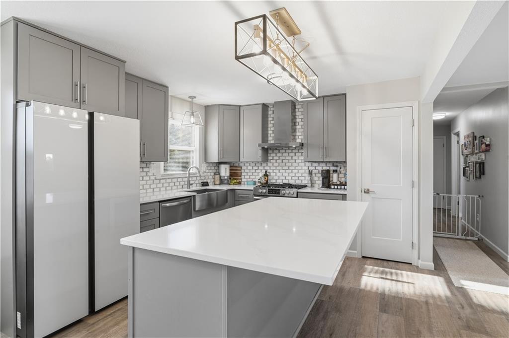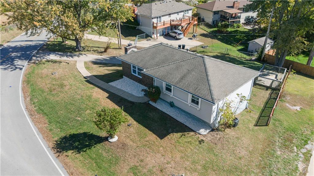 Meticulously maintained 4-bedroom, 2 bath, nestled near the heart of Parkville. This clean, move-in-ready home features nearly 1842 square feet of living space. Open- concept living room with cozy fireplace flows into the stunning eat-in kitchen with new cabinetry, oversized center island with built in microwave, new stainless-steel appliances, and tile backsplash. Primary bedroom includes private en-suite with tiled shower. Two additional bedrooms share a second full bath. Walk-out lower level offers a fourth bedroom AND a bonus rec room for entertaining. Detached outdoor deck perfect for grilling and relaxing. Rear-entry 2-car garage with abundant driveway parking. Neighborhood Park with-in walking distance. Easy access to top-rated schools, shopping and dining, you will enjoy the best of suburban living with the vibrant KC lifestyle just a stone's throw away.