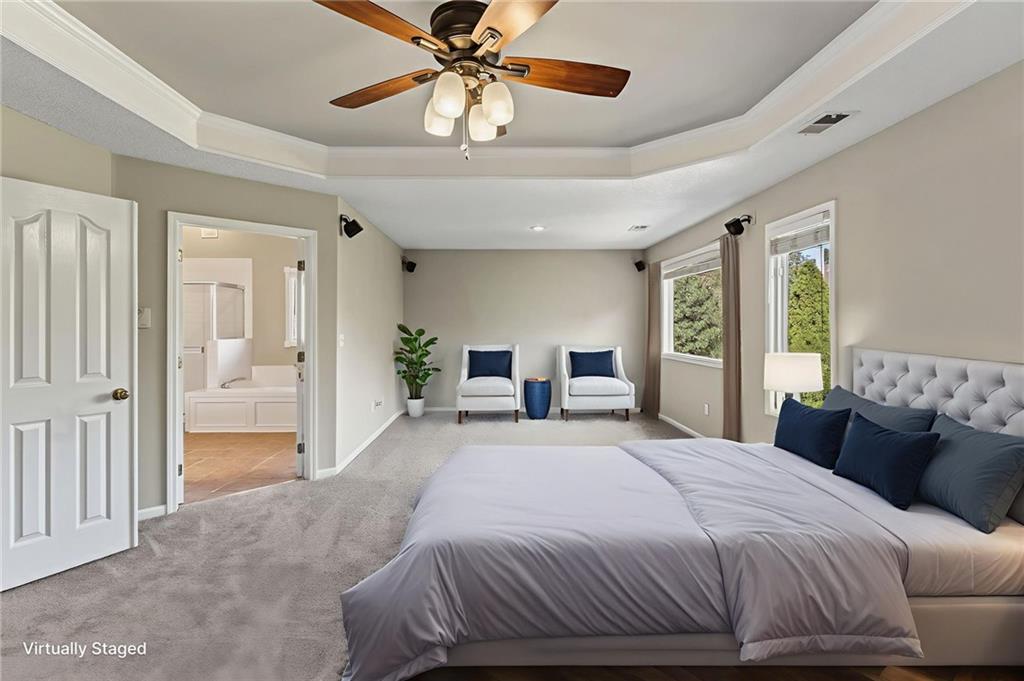 Welcome to a beautifully updated, luxury 4 (5) bedroom, 4.1 bath home tucked in a quiet cul-de-sac on nearly a half-acre lot! Step inside this light-filled residence showcasing elegant architectural details including a grand two-story entry with catwalk, formal dining room with custom wainscoting & bay window, & a spacious home office or bonus room. The expansive living room, anchored by a refined fireplace, flows effortlessly into the enormous sunroom—a stunning space ideal for large gatherings, a tranquil greenhouse, or year-round entertaining. The kitchen and hearth room serve as the heart of the home, featuring a granite island, generous pantry, & brand-new range & microwave—all appliances included. Enjoy the warmth of the second fireplace in the hearth area and a sunlit breakfast nook. Upstairs, the primary suite is a true retreat, complete with a sitting area, spa-inspired bath with jetted tub, abundant cabinetry, and one of the largest walk-in closets you’ll find. A private guest suite features its own full bath and walk-in closet, while two additional bedrooms share a convenient Jack-and-Jill layout with separate vanities. The finished lower level offers impressive versatility & space, including a recreation area with wet bar & theater setup, a game or bonus room ideal for entertainment or a private library, and a non-conforming 5th bedroom with full bath—perfect as a guest suite, fitness room, or additional office. Outdoors, enjoy a resort-style backyard designed for both relaxation and entertainment with a beautiful paver patio and private fenced yard surrounded by mature landscaping. The large basketball hoop, grilling area off the garage, and extra storage beneath the sunroom add both function and practicality. Zoned HVAC with 2 units! This home truly embodies luxury living with everyday comfort—offering space, style, and an unbeatable Overland Park location.