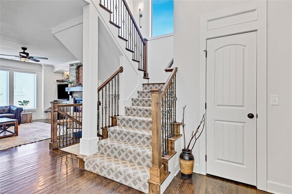 Beautiful 2-Story home is ready to move into! Hardwoods throughout the main level! Fabulous built-ins and designer touches throughout! Custom kitchen cabinets with large island, extra hutch space and walk-in pantry provide plenty of storage space. Eat in kitchen plus formal dining room allow for gathering family and friends. Boot bench at garage entrance keeps shoes, bags and coats organized. Main level bedroom or office with built-ins and access to full bath. Kitchen opens to great room with even more built-ins and a beautiful stone fireplace! Walk out to the covered, stamped concrete patio and enjoy the cozy firepit. Unfinished basement provides additional storage space.