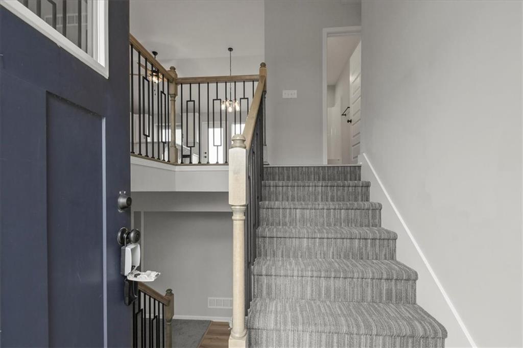Prepare to fall in love with this almost-new construction, split-level home in the desirable North Creek community of Oak Grove! Designed with an inviting and calm aesthetic, this property perfectly blends modern features with cozy, livable spaces. It's ready for you to move in and start making memories! The architectural style creates a wonderful separation between living areas while maintaining an open, airy feel thanks to the vaulted ceilings and open-concept layout between the kitchen and living room. The gourmet kitchen is truly the heart of the home, featuring sparkling white cabinetry, a large center island with a crisp white quartz-style countertop, a full suite of stainless steel appliances, and a chic subway tile backsplash. The main living area is highlighted by a stunning, vaulted ceiling and a beautiful fireplace framed by white subway tile and a rustic wood mantle—perfect for gathering on chilly evenings. Your private primary suite is a luxurious retreat, featuring a tray ceiling and soft, neutral-toned carpet. The ensuite bathroom is a showstopper with a double-sink wood-toned vanity, contemporary light fixtures, and eye-catching patterned tile flooring. The attached walk-in closet offers smart organization with built-in shelving and ample hanging space. You'll appreciate the continuous, premium hard-surface flooring throughout the main floor living areas for easy maintenance and a cohesive look, complemented by sleek black hardware on cabinets and doors for a bold, contemporary contrast. The staircase, featuring modern black wrought iron balusters, connects the levels with style. The finished lower level provides excellent bonus space for a second family room, home office, or play area, complete with large windows for natural light. The exterior offers great curb appeal with charming gray-blue siding, white trim, a stone-accented front, and a two-car garage. This home is truly a special find—a perfect blend of style, comfort, and functionality.