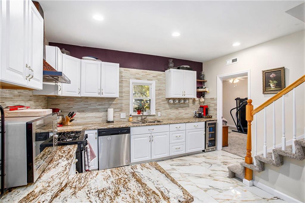 Charming, updated farmhouse in the heart of town! This 3-bedroom, 3-bath 1.5 Story Home blends character and modern comfort from the moment you step through the front door. One of the oldest homes in Louisburg, it has recent major updates including NEW Roof 2 years, HVAC system and water heater 4 years ago!!! The open main level features a light-filled living and dining space with neutral tones and cozy carpet, flowing easily into the kitchen. You’ll love the stylish updates — white cabinetry, granite counters, tile backsplash, and sleek stainless steel appliances. Upstairs, spacious bedrooms offer warmth and charm, with unique ceiling angles and large windows bringing in natural light. Both bathrooms are beautifully maintained, with clean finishes and thoughtful storage. Step outside to enjoy a private fenced yard, perfect for gatherings or playtime under the shade of mature trees. A large deck provides plenty of room for grilling or relaxing, and there’s a shed for added storage. With its inviting front porch, modern updates, and convenient location near shopping, dining, and parks — this home is the perfect mix of classic charm and everyday functionality!