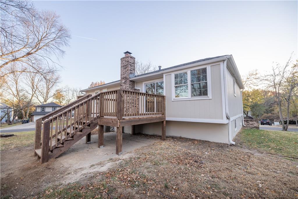 This beautifully renovated home offers the perfect blend of comfort and character. Modern updates throughout make this home feel truly move-in ready. The great room with vaulted ceiling and gas fireplace opens to the kitchen with granite counters, brand new stainless appliances, pantry, white cabinets and breakfast area. Primary suite features a private bath with tile shower. Two additional bedrooms, 2nd full bath with tub/shower and formal dining room/office space are also on the main level. The finished lower level includes a family room, laundry and additional storage space. Oversized garage with plenty of room for a workbench! The deck overlooks a level backyard with mature trees. Located on a quiet cul de sac and close to highways, shops, dining and Top Rated Blue Springs Schools!