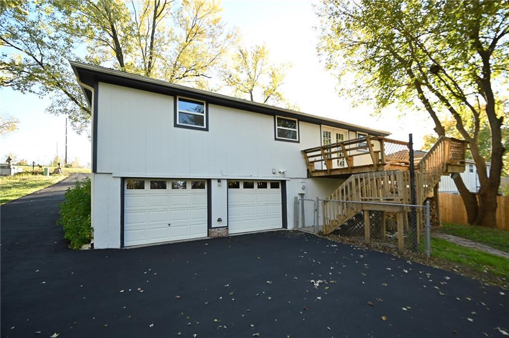 Ready to move in! Enjoy this tranquil setting. Updated raised ranch with gorgeous, private, fenced yard. Lounge on the deck and enjoy nature. New flooring in most of the home. Beautiful stone fireplace in the family room. Roof only 5 years old. Home has been well cared for and it shows. Home sits off the main road with lots of off street parking. Nice spacious 2 car garage with openers. Lower level has potential for another bath, laundry area. Close to airport, shopping, and entertainment, and is in Platte County RIII school district.