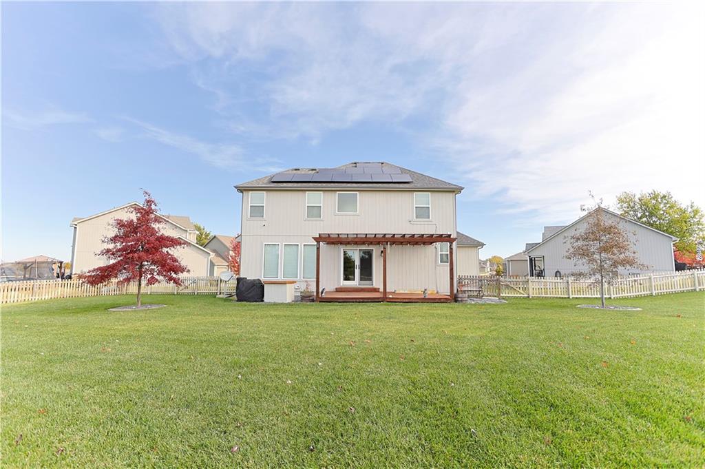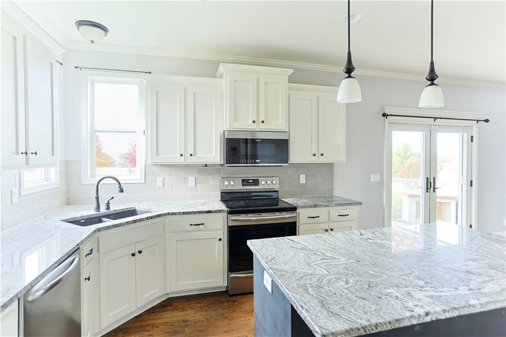 Nestled on a quiet cul-de-sac, this thoughtfully designed home offers the ideal blend of style, functionality and location. The open floorplan welcomes you with soaring ceilings, abundant natural light and a warm, modern aesthetic. The heart of the home features a beautiful kitchen seamlessly flowing into the dining and living spaces,perfect for both everyday living and entertaining. A spacious primary suite complete with dual vanities, walk-in shower and a generous walk-in closet! Downstairs you’ll find a versatile space—idealrecreation area with 3 TV hookups! Outside, the fully fenced backyard offers a serene setting for summer evenings, with ample room for BBQs, play or simply relaxing. This home was crafted with quality in mind, premium finishes and smart-home touches, and energy-efficient features and even a dedicated 240V garage EV charging outlet. With low-maintenance landscaping, a three-car garage, and a highly rated Blue Springs School District, the location truly has it all. Just minutes from shopping, dining and major road access, you’ll enjoy both convenience and tranquility. Check it out, NOW! Update- Blue accent wall has been painted grey since photos. Seller has added it to the photo collection along with some of the jellyfish lighting experience frm last season.