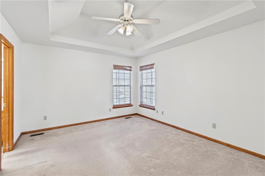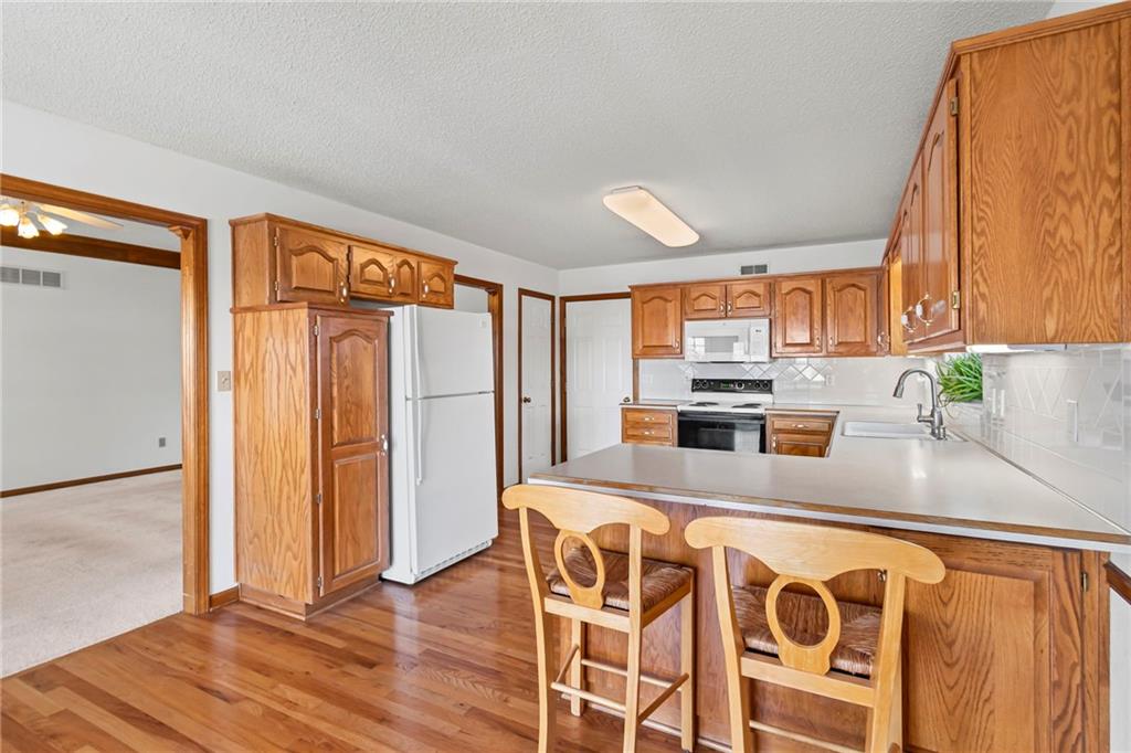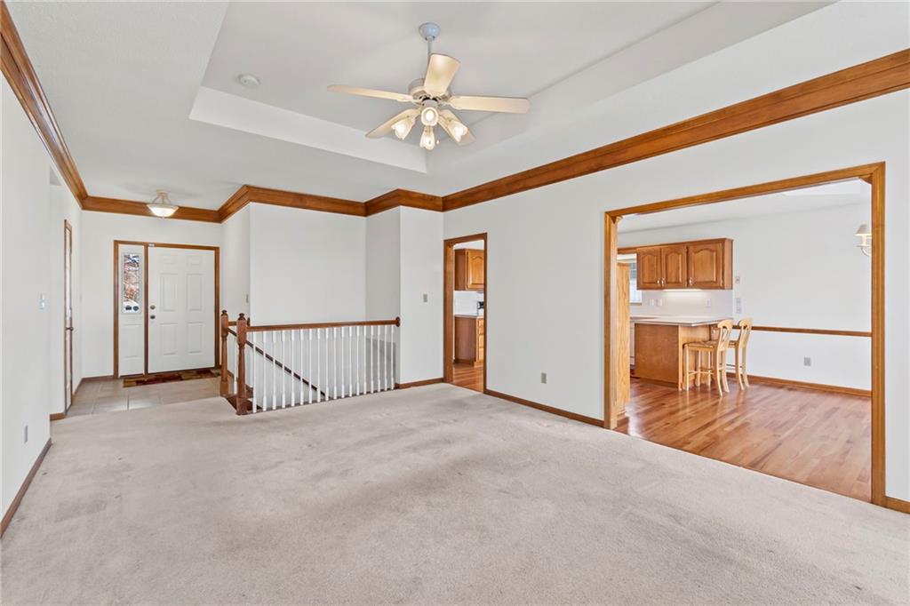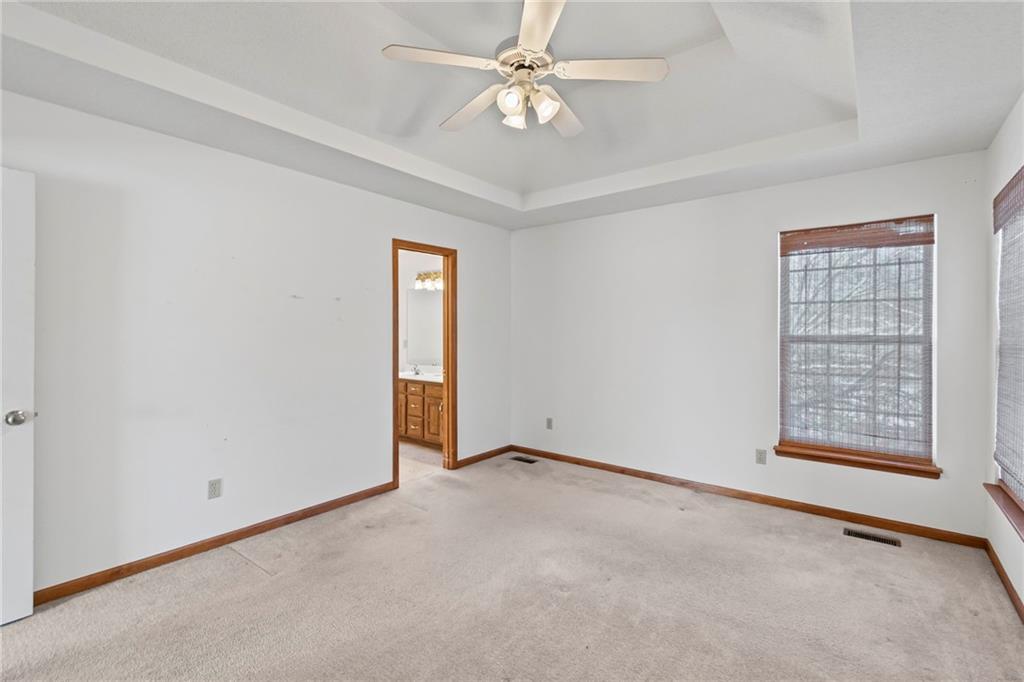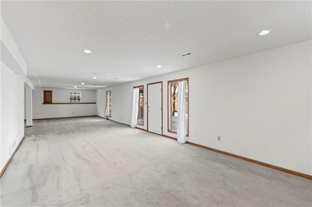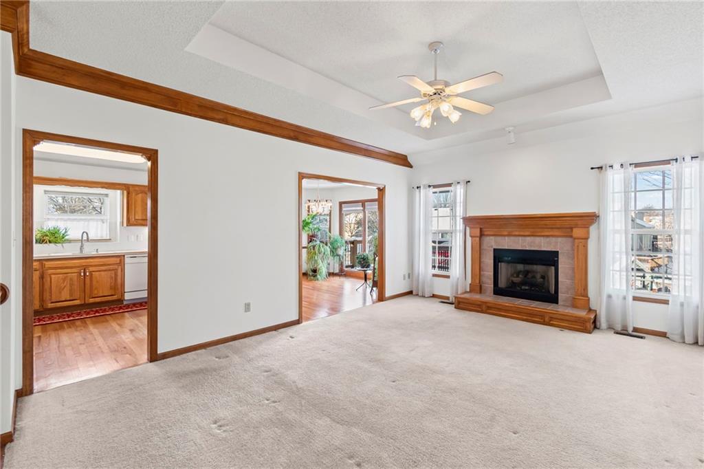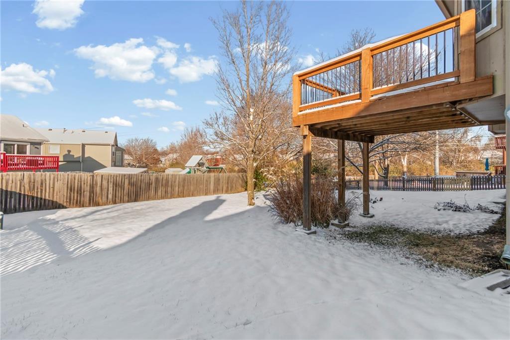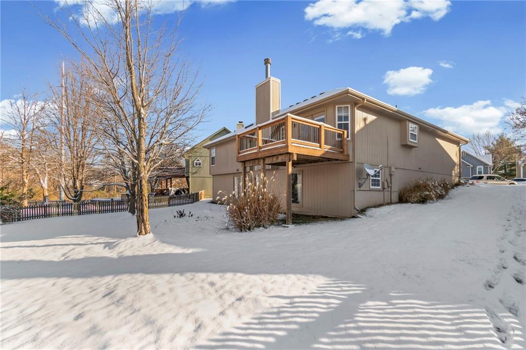 You do not want to miss this adorable true ranch home, offering three bedrooms and three bathrooms, nestled in a quiet cul de sac in Woodbury Park…and just a short distance from Lees Summit North High School! This home has been lovingly lived in and it shows. Natural light pours in through every room, the vaulted ceilings and cozy fireplace create such an inviting feel, and the clean neutral palette makes it so easy to make the space your own. The kitchen is spacious and functional with plenty of cabinet storage, and the bump out window above the sink is such a lovely feature for plants or decor. Even better, accessing the kitchen directly from the garage makes the task of unloading groceries an absolute breeze. The bedroom layout is thoughtful and comfortable, with a hall bathroom serving the two secondary bedrooms and the primary suite offering its own private ensuite. The walkout basement adds even more usable space with a full third bathroom and room for a home office, recreation, entertaining, or all of the above! Outdoors, you will love the established and thoughtfully placed landscaping. Enjoy the view of it all from the deck, which was replaced in 2019 and refreshed in August 2024…with a full power wash, restain, and seal! Major updates include: A/C replaced in August 2024, furnace replaced in January 2022, new microwave installed in October 2025, and substantial driveway repair in November 2025. Beautifully maintained and move in ready, this home truly delivers comfort, updates that matter, and a fantastic location!