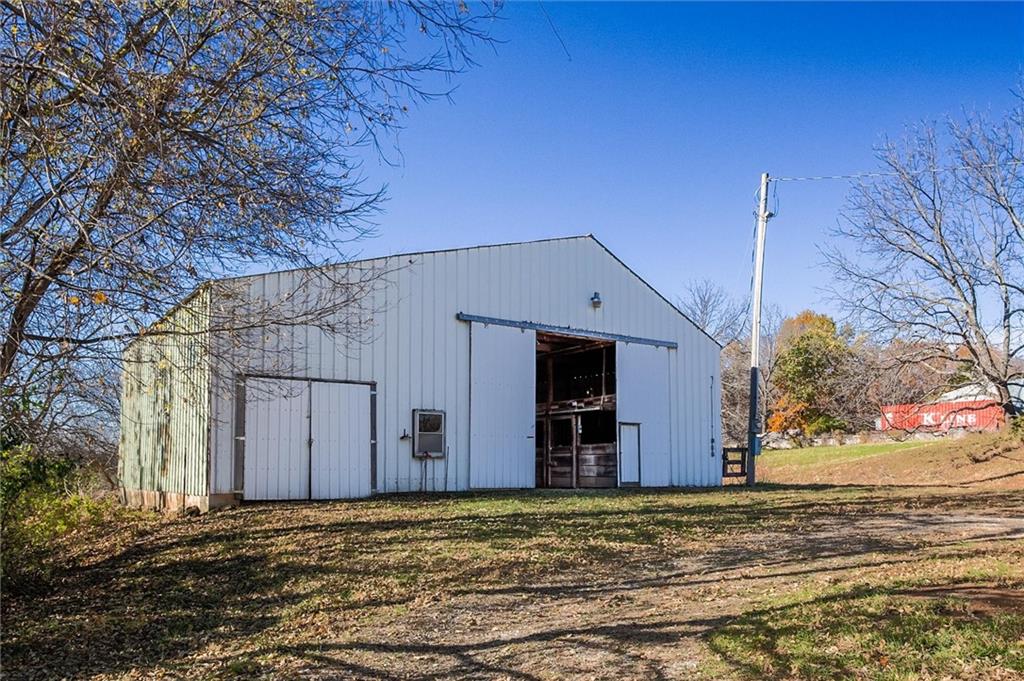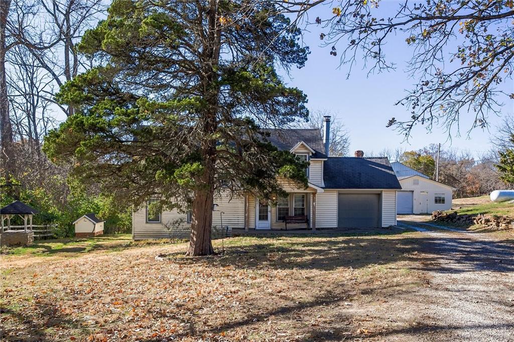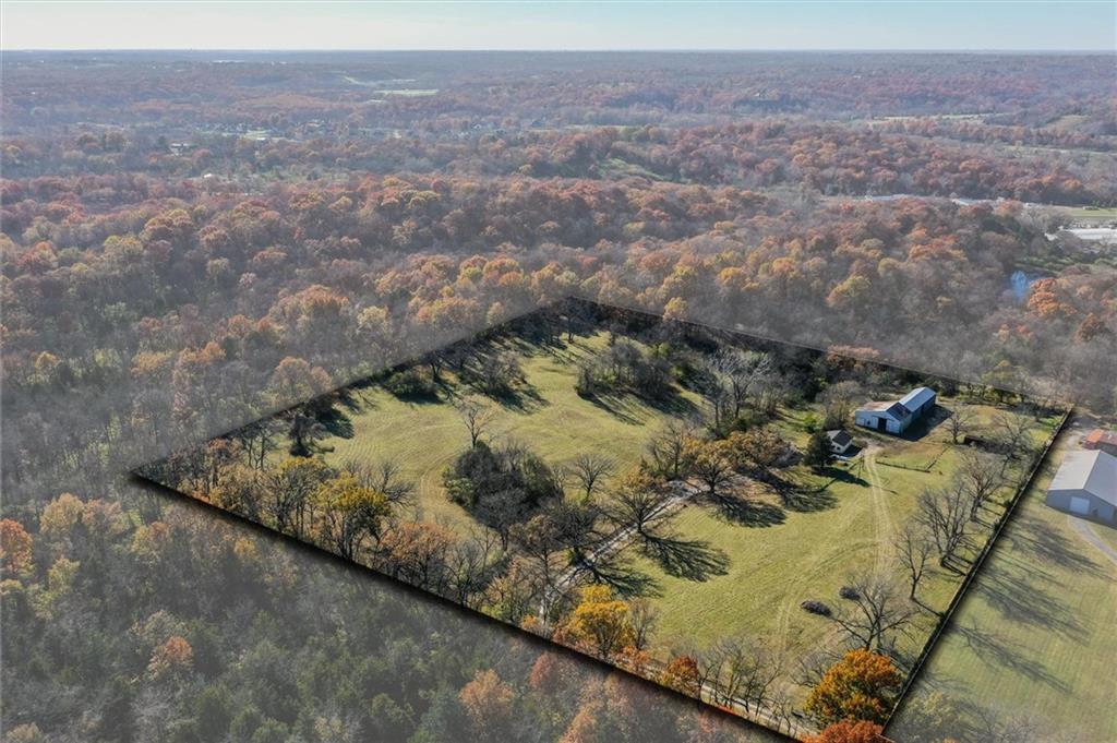 10 Acre WOODED PARADISE IN LEE'S SUMMIT SCHOOL DISTRICT. PRIVATE tree-lined gravel drive opens to spectacular rolling hills, abundant wildlilfe, walnut trees, 2-story house & garage, detached 1-car w/shop, 5-stall HORSE BARN with indoor arena. Fenced pastures. Perfect Opportunity to own your oasis/retreat without the long commute. Home needs updating but in solid condition, central heat for easy add of central air. Kitchen appliances stay. Build your dream home in a storybook setting that is uniquely beautiful or just relax and enjoy some hot chocolate and watch the deer from your porch.