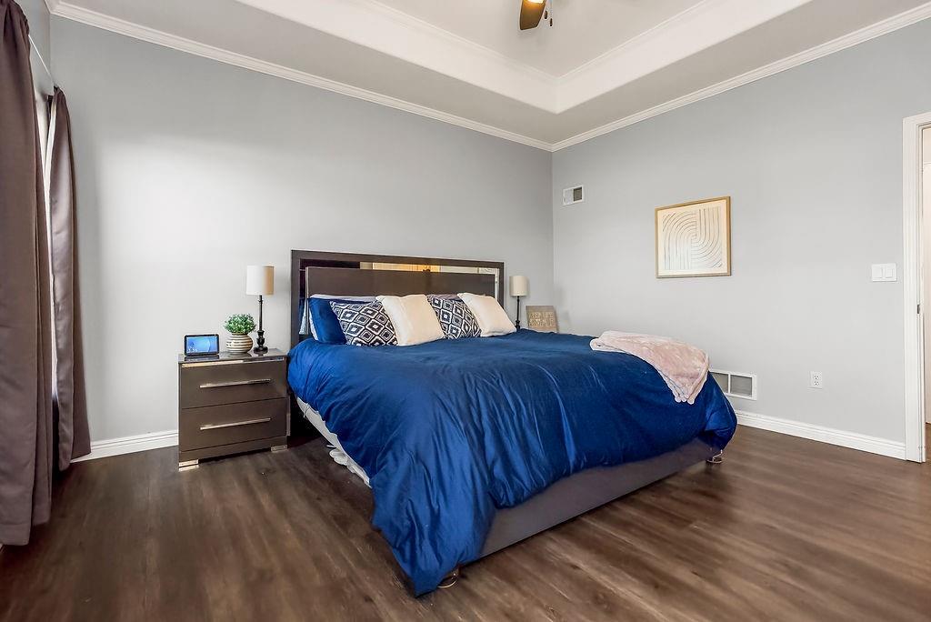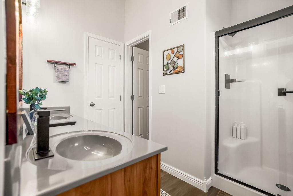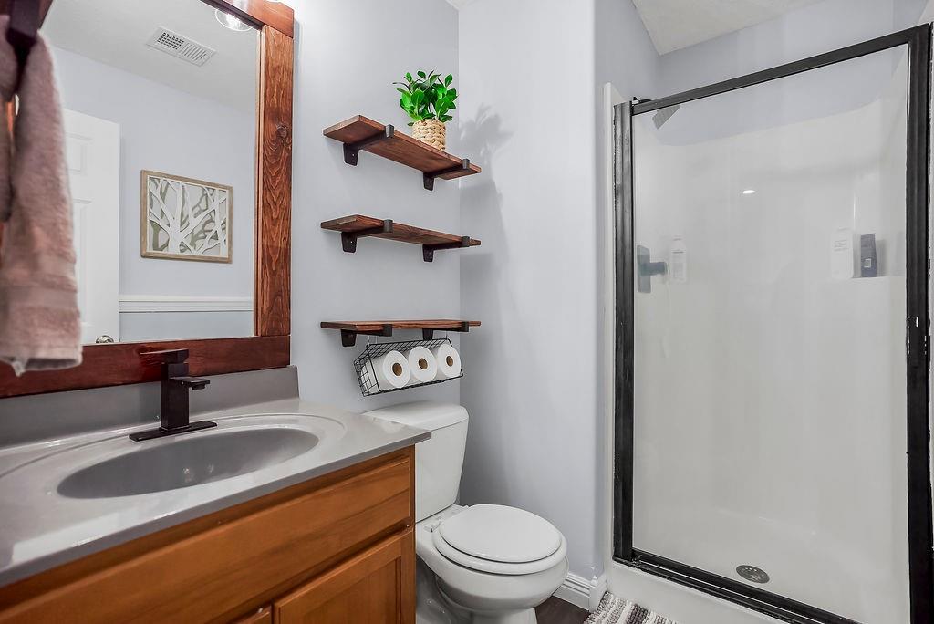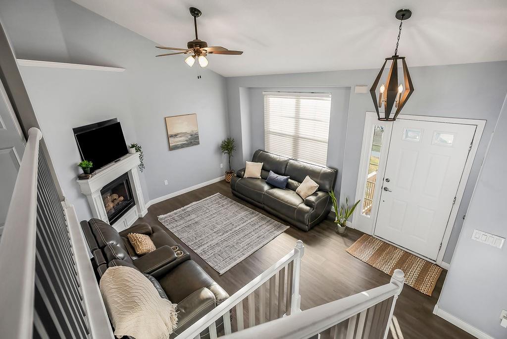 Great location in Hidden Creek! This beautifully maintained 4-bedroom, 3-full-bath split-level home has been freshly painted inside and out and features numerous updates throughout. Enjoy the modernized kitchen, updated flooring, and new fixtures that give the home a clean, refreshed feel. The main level offers a bright and welcoming living room with large windows, high ceilings, and a cozy fireplace. Off the kitchen, a spacious deck overlooks the backyard and corner lot, which is adjacent to open green space—perfect for extra privacy and views. The upper level includes the primary suite, two additional bedrooms, and a full bath. The finished lower level provides a large bedroom with a walk-in closet, full bath, additional living area, and direct garage access—ideal for guests, teens, or multigenerational living. To top it off, this home comes with a NEW HVAC system! Move-in ready and in a sought-after neighborhood—don’t miss this one!