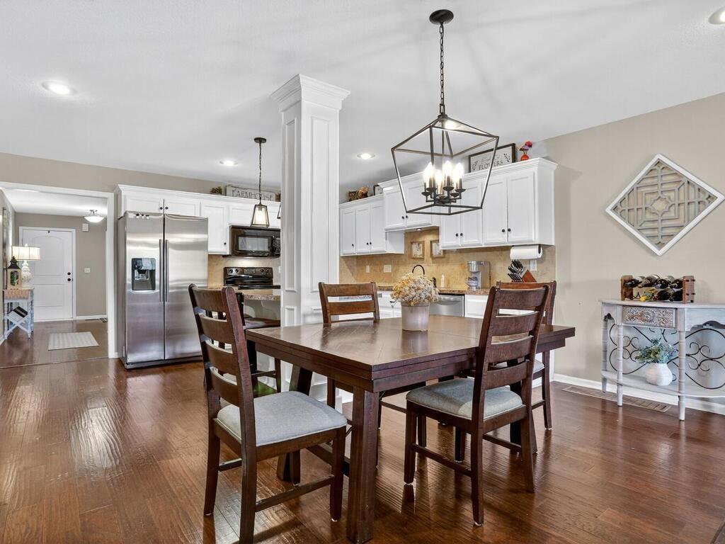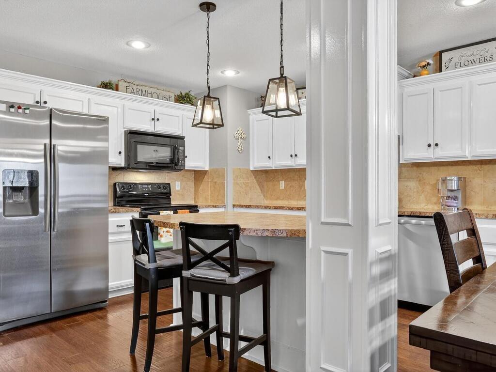 Tuscany Hills Townhome! This a 2+ Bedroom, 3.5 Bath home, 1 car garage & finished walkout lower level is spacious & very open! Great main level for everyday living. Entry features a Craftsman Front Door w/Storm Door, Ring Doorbell, Coat Closet, wall sconces, & Wood Plank Floors. Great Room features a Corner Gas Fireplace w/ceramic tile surround, painted mantle & hearth, Windows w/blinds, Ceiling Fan, & a slider door to the Deck. The Eat-In Kitchen opens to Dining for meals & hosting. Details include Pantry, painted cabinets, ceramic tile backsplash, 50/50 Stainless Sink, Pull-Out Trash, Cookie Sheet Cabinet, Eat-Up Island, Pendant Lights, & Appliances:Electric Range, Built-In Microwave & Stainless Dishwasher. A convenient Half Bath serves the main level. Upstairs offers 2 large suites! Primary Bedroom Suite offers a tray ceiling, ceiling fan, blackout blind, & a Walk-In Closet. Primary Bathroom includes a double sink vanity, w/ cabinet, Shower over Tub, & Linen Closet. The Front Bedroom Suite adds a accent Ceiling, large Closet w/attic access, & an adjacent Full Bath: Shower, Vanity w/Cabinet, tile floors! Laundry is on the bedroom level! Lower Level expands options as a large Family Room or potential 3rd Suite w/Full Bath, Walk-In Closet, & a slider to the Back Patio w/privacy wall. Plus Storage areas! Mechanical notes: brand-new Rheem Furnace, Aprilaire humidifier, AO Smith 40-gal water heater, radon mitigation, & a designated outlet circuit. Outdoor spaces include a Composite Deck w/ drink rail & aluminum spindles that backs to green space & woods, plus a private Back Patio. The Front-Entry Garage provides an insulated Door w/opener, shelving, floor drain, window, painted floor, & finished walls & ceiling. HOA supports low-maintenance living. Served by North Kansas City School District. Everyday needs are close by across the Northland including coffee, groceries, healthcare clinics, pharmacies, fitness centers, banking, & casual dining, w/quick access to 291 HWY.