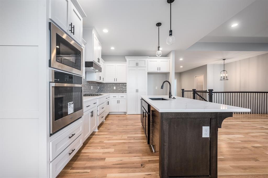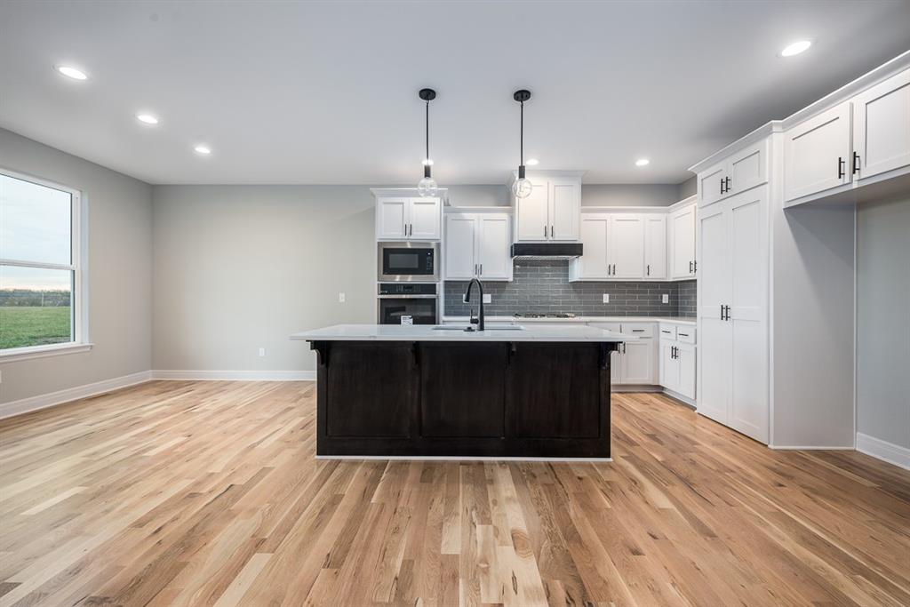 BRAND NEW CONSTRUCTION ON 4.81 ACRES, THE "CHIEFTAIN" IS A STUNNING REVERSE 1.5 STORY HOME WITH A THOUGHTFULLY DESIGNED OPEN FLOOR PLAN. This 4-bedroom, 3-bath home features beautiful hardwood floors throughout the main living areas, and a chef's kitchen with granite counters, an island, built-in appliances, and a spacious walk-in pantry. The great room is the perfect place to relax, complete with a cozy fireplace. The master suite is a true retreat, offering a private bath with double vanities, granite counters, a jetted tub, separate shower, and a large walk-in closet with direct access to the laundry room. The finished basement includes a spacious family room, two additional bedrooms, and a full bath. Enjoy the scenic country views from your covered patio or porch. The 3-car garage provides plenty of space for vehicles and storage. Don't miss this opportunity to own a piece of country living with modern comforts! Seller is a licensed Realtor in Kansas and Missouri. Pictures are similar to what home will look like finished. Taxes and room sizes estimated.