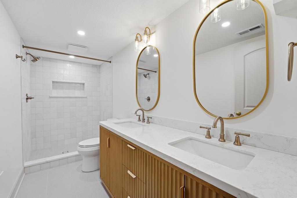 ABSOLUTELY STUNNING REMODELED RANCH IN THE HEART OF LEAWOOD! This beautifully reimagined 4-bedroom, 3-bath home perfectly blends timeless charm with sophisticated modern design. Step inside to an inviting open-concept layout featuring gleaming refinished hardwood floors, designer lighting and high-end finishes throughout. The vaulted family room is filled with natural light and anchored by a cozy fireplace—ideal for gathering or relaxing. Show stopping kitchen will impress any chef with quartz countertops, custom cabinetry, walk-in pantry, stainless steel appliances and a large eat-in island perfect for entertaining. Seamlessly connected dining area with built-in dry bar makes hosting effortless! Retreat to the spacious primary suite boasting a walk-in closet with washer/dryer hook-ups and a luxurious spa-inspired bath with double vanity, soaking tub and walk-in shower. A second main-level bedroom and full bath offer flexibility for guests or a home office. Full, finished lower level expands your living space with a generous rec room, two additional bedrooms, a third full bath and ample storage. Enjoy outdoor living on the patio overlooking the beautifully landscaped backyard with access from the family room to easily move the party outdoors. Bonus feature includes an EV car charger in the attached garage. Located in a highly sought-after Leawood neighborhood near parks, top-rated schools, premier shopping and dining. Move-in ready, meticulously updated and absolutely stunning—WELCOME HOME!