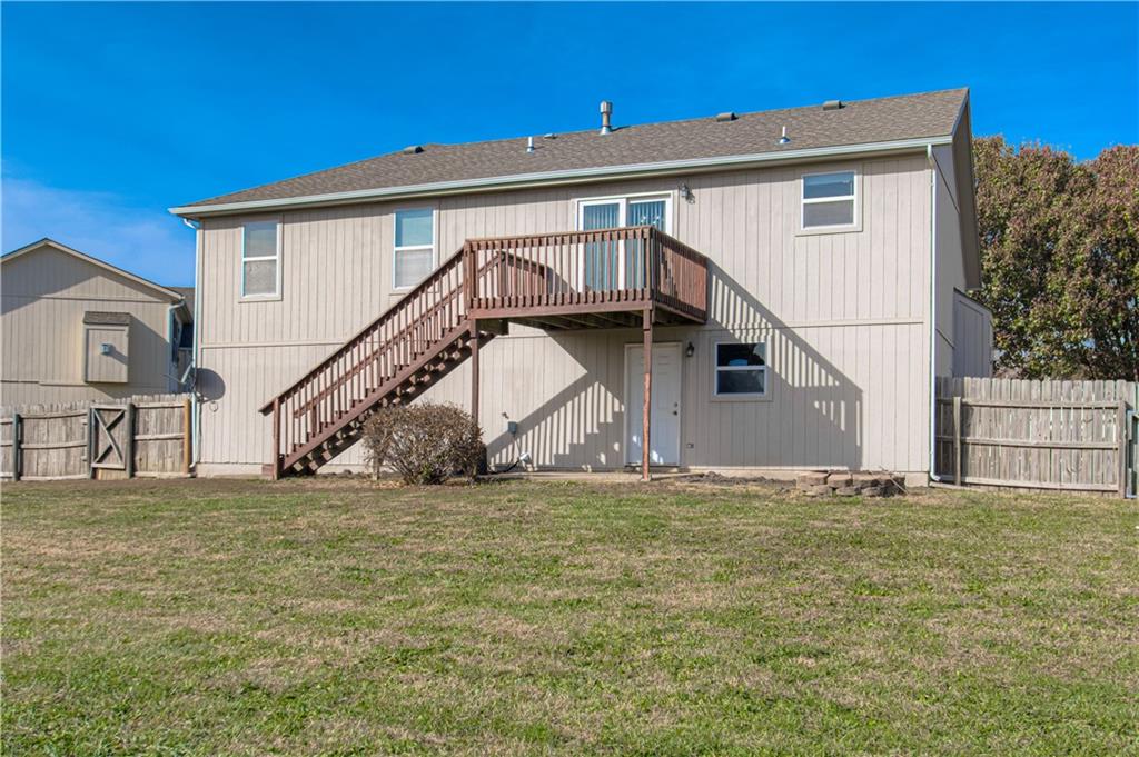 WOW~ Step inside this adorable 3-bedroom, 2-bath home! Instantly feel the warmth and care throughout. The light-filled great room welcomes you with gleaming refinished wood floors and a cozy gas fireplace — the perfect spot for relaxing or entertaining on cool Kansas evenings. The open layout flows seamlessly into the dining area and the spacious kitchen, featuring a functional U-shaped design, abundant counter space, abundant of cabinetry, and a pantry for all your storage needs. Whether you’re hosting family dinners or enjoying a quiet morning coffee, this kitchen is designed for both comfort and plenty of space. Your primary suite offers a peaceful retreat with dual closets and a private bath featuring double vanities and a private soaking tub — perfect for winding down after a long day. Outside, you’ll fall in love with the incredible backyard — absolutely huge backyard for everyone to enjoy! There’s room for kids to play, pets to run, and gatherings under the stars - even with a fire pit. The large deck overlooks the expansive yard, with a patio below for extra entertaining space off the walk-out lower level. This home has it all: charm, modern updates, and a layout that fits today’s lifestyle — HURRY to see this adorable home! Some photos are virtually staged!