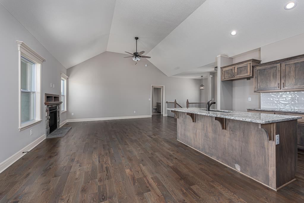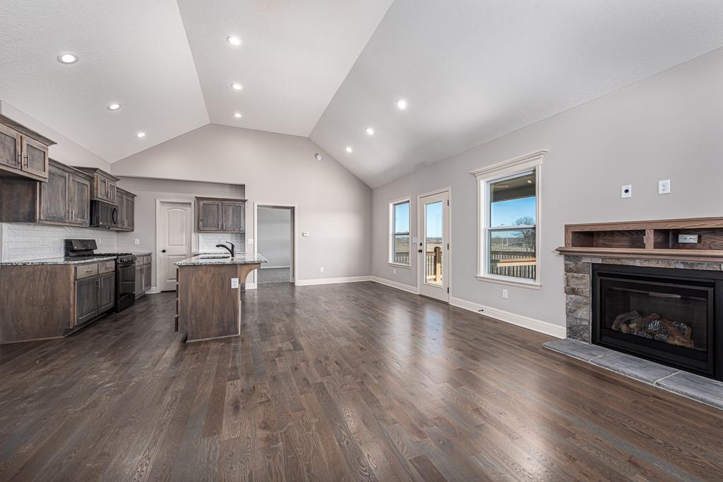 BRAND NEW 3-BEDROOM RANCH WITH OPEN FLOOR PLAN AND 3-CAR GARAGE! If you’ve been searching for a stylish new construction home that blends comfort, quality, and function, this one checks every box. The Daniel Plan features hardwood floors throughout the kitchen, dining, and living areas, creating a warm and inviting feel. The kitchen is designed for modern living with granite counters, a walk-in pantry, and an open flow to the huge great room with a cozy fireplace—perfect for entertaining or quiet nights in. The spacious master suite offers a large walk-in closet and a beautiful bath with a custom corner shower. The unfinished basement provides endless potential for future expansion—think rec room, gym, or extra bedrooms. Enjoy peaceful views, a covered patio, and plenty of yard space for outdoor fun. Photos are of a similar model; taxes and room sizes are estimated. Seller is a licensed real estate agent in Kansas and Missouri.