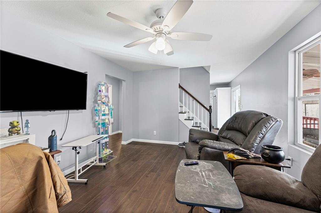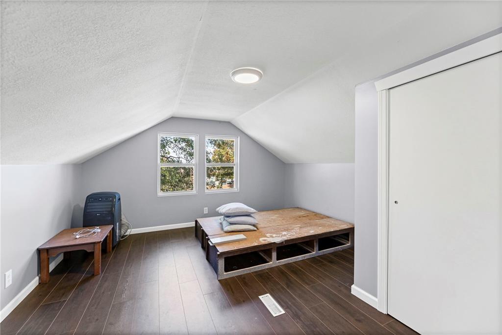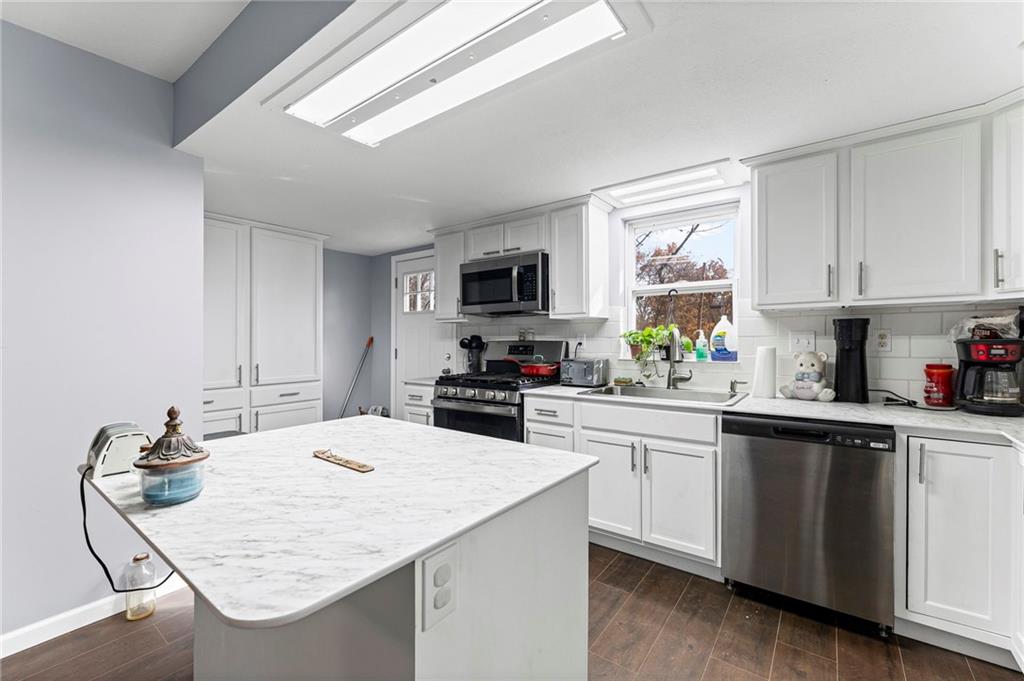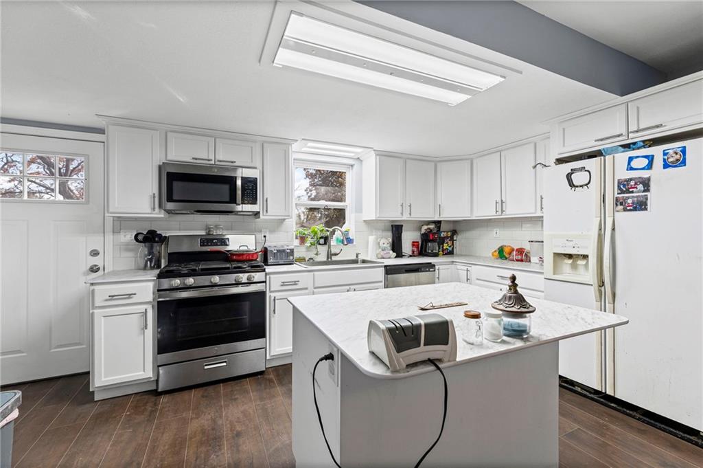This beautifully updated 3-bedroom, 2-bath home offers comfort, character, and modern style throughout. The main level includes two spacious bedrooms and a bright, open living room filled with natural light. The fully updated kitchen features a large island, modern finishes, and an eat-in dining area perfect for wonderful meals or entertaining. Upstairs, you'll find a private suite that spans the entire floor with its own full bathroom—ideal for guests, a primary retreat, or a quiet workspace. Enjoy extra living space in the enclosed sunroom, or step outside to relax on the large covered deck or back patio. The big, flat backyard provides plenty of room to play, garden, or gather with friends. A detached garage offers convenient parking or additional storage, and the home sits on a quiet street in a welcoming neighborhood. This move-in-ready property is a wonderful place to call home!