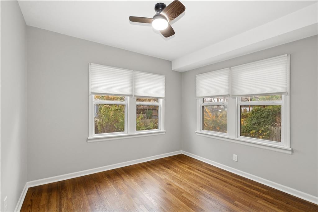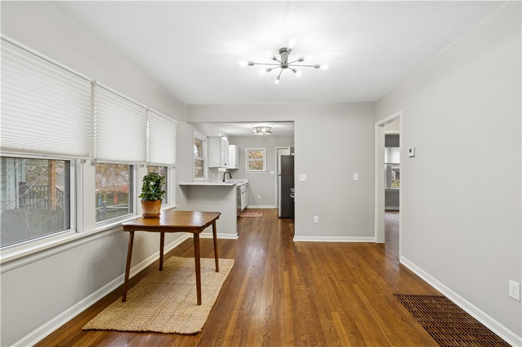Charming East Brookside bungalow with so many great updates including new HVAC. This 2 bedroom 1 bath home is so fresh and pretty. You'll be welcomed by the cozy, covered front Porch. The entire interior is freshly painted with lovely neutral colors for any décor choices. Refinished hardwoods floors throughout are stunning. The living room and dining room are graciously sized. Here is the WOW! Full kitchen renovation including; new cabinets, stainless steel appliances, quartz countertops, and lighting. There is an inside drop area by the back door for coats and backpacks. Sturdy back steps lead to a fenced yard. The basement is home to a 1 car garage, laundry room and great storage. The back of the shared driveway is private with parking room for an additional car. This home is surrounded by wonderful shops and restaurants - Brookside, Crestwood and Morningside Plaza. Near UMKC and Rockhurst College. It is a gem - don't miss it!