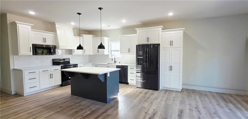 This stunning 3-bedroom, 2-bathroom new-construction home offers over 1,750 square feet of thoughtfully designed living space and countless upgrades throughout. Step inside to an inviting open-concept floor plan filled with natural light from transom windows. The spacious living area flows seamlessly into the Chef's kitchen, featuring solid surface countertops, custom cabinetry, a large island, black stainless-steel appliances, and a coffee bar - perfect for both everyday living and entertaining. The primary suite provides a true escape with its walk-in closet, dual vanity, and custom-tiled shower, creating a spa-like atmosphere. Two additional bedrooms offer generous space for family, guests, or a home office. Outside, enjoy the privacy of a spacious lot, ideal for gatherings, gardening, or simply relaxing in your own outdoors. With its custom finishes, open layout, and peaceful location, this home perfectly blends style, comfort, and convenience. Taxes and square footage are estimated.