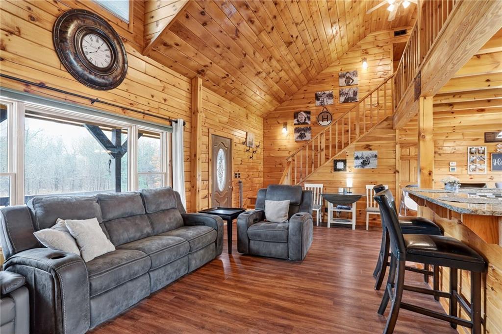 **Secluded Log Home Retreat on Wooded Acreage with Abundant Wildlife on 9.5 acres** Experience true country living in this stunning log home, offering the feel of a private getaway while providing all the comforts of a primary residence. Surrounded by mature woods, scenic views, and frequent wildlife sightings, this property delivers the peaceful, outdoor-focused lifestyle so many seek. Inside, the home features beautiful woodwork and flooring throughout. The main level includes an open kitchen and dining area, along with a spacious primary suite featuring an en suite bath and a large walk-in closet. The kitchen is designed for both everyday use and gatherings, with a wrap-around island, granite countertops, newer appliances, and a generous walk-in pantry. The vaulted living room opens to the upstairs loft area, where you’ll also find a second spacious bedroom and a full bath. The finished walkout basement adds even more living space with a large rec room and two additional bedroom areas, ideal for a variety of uses. Step outside onto the lower patio and take in peaceful wooded views and regular wildlife activity. The acreage offers room to explore, garden, recreate, or simply enjoy nature. A clearing toward the back of the property provides space suitable for outdoor activities such as target practice or other hobby uses. The home is all-electric and features a **wood-burning furnace system** for supplemental winter heat. Solar panel capability and a **whole-house generator** connection add extra efficiency and peace of mind. Relax on the expansive front porch, take in the quiet surroundings, and imagine making this unique property your next home.