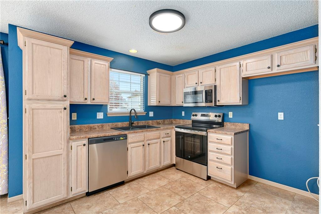Highly sought after end unit that backs to greenspace with trees. MOVE IN READY!!! Cleaned from top to bottom (even power washed the patio) with a splash of color (various ocean/sky blues and relaxing grays). NEW - kitchen SS appliances (stove, microwave, & dishwasher), carpet throughout the whole unit, kitchen faucet, primary suite - light fixtures, sink faucet, shower & bathtub faucets, toilet flange ring & wax ring), water heater (next week), window & storm door screens (4), & 2 sets of blinds. Seller replaced A/C unit the summer of 2023 to a Trane XR. Other updates include - kitchen ceiling light fixture, taller toilet in primary bath, & new fan in living room. BIG BONUS - Garage features an attic pull-down with stairs for additional storage. Front faces West (sun to clear driveway). The patio is on the East (shade for the evening). Washer & dryer stay with the unit. Amenities include lawn care, snow removal, community pool, exterior maintenance. Neighborhood is owner occupied only, no rentals allowed. Home is close to shopping and restaurants, with quick highway access, and located within award winning Lee's Summit School District (New middle school - 1 mile to the East). Don’t miss out on this fantastic opportunity to own a move-in ready home with thoughtful updates in a prime location. COME SEE IT TODAY!