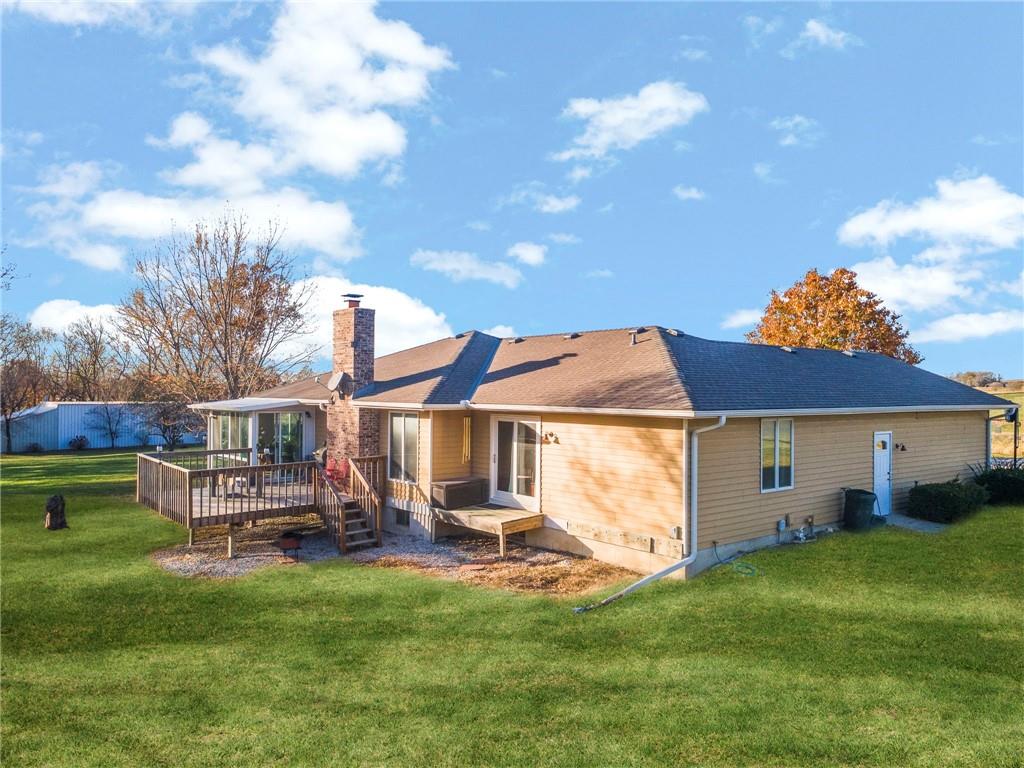 Experience country living at its finest on 8.4 beautifully landscaped acres right on blacktop roads, where tranquility meets contemporary upgrades in this inviting Odessa retreat. Step inside to find a spacious three-bedroom, two-bath ranch layout designed for everyday comfort. You’re greeted by a warm, inviting kitchen made for holiday gatherings. With its open layout, large island, bar seating, and custom pantry shelves, there’s space to cook, connect, and keep family close. The kitchen flows seamlessly into the living room with its beautiful brick wood-burning fireplace—perfect for entertaining. Need extra seating? Move from the kitchen bar to the adjoining dining room. This open-concept design ensures you’re always part of the fun. Off the living area, the master bedroom features a private porch to enjoy evening sunsets, while the updated master bath boasts a stunning custom shower with dual shower heads, his-and-her sinks, and separate closets. Too hot or cold for the porch? Relax in the sunroom and soak in serene views of manicured grounds with apple and pear trees. Just off the sunroom, a large newer deck offers plenty of space for family. Evenings are cozy by the fireplace, and modern updates—new can lights, generator hookup, surge protector, 4 year old roof, and new furnace blower motor—add both efficiency and peace of mind. This all-electric home stays energy efficient year-round. A deep two-car garage and huge unfinished basement with elevated ceilings offer abundant storage or expansion potential. Outside, a 42x50 barn with concrete floors, covered awning, and its own electric panel provides flexible space for livestock, hobbies, and a workshop. If that’s not enough, a three-sided pole barn adds even more storage. This property blends country charm with modern comfort— with a perfect blend of pasture and wood. This is an exceptional choice for hobby farmers, outdoor enthusiasts, or anyone seeking a peaceful, versatile retreat close to town and highways.