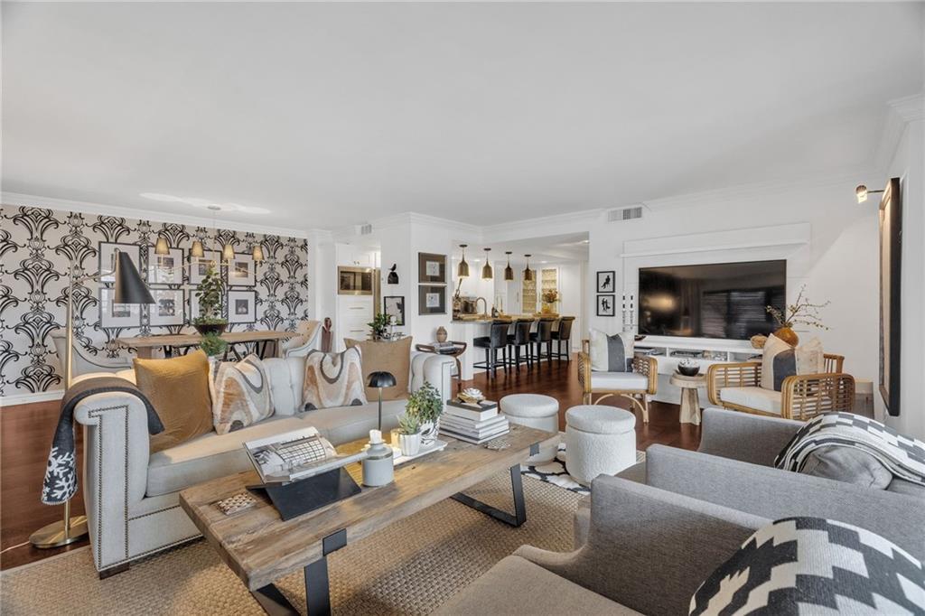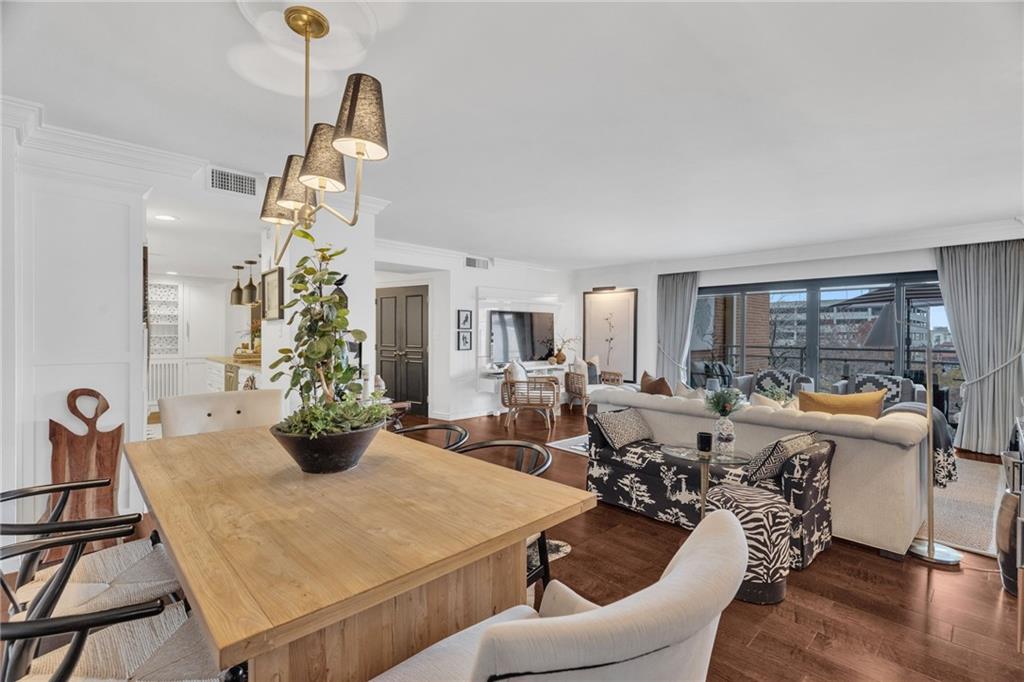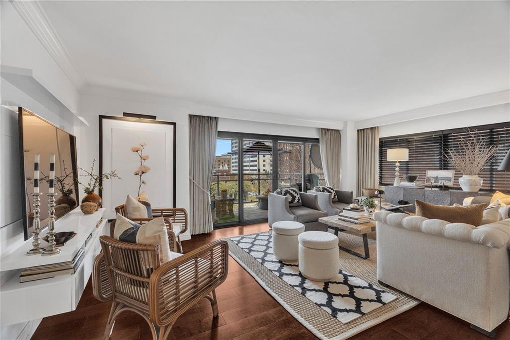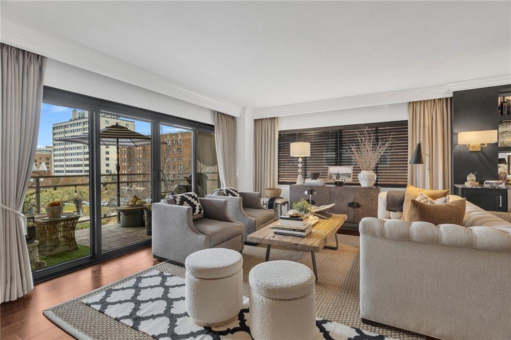 Welcome to The Carlton Plaza—where the landscaping is sharp, the lobby is stylish, & the views are so good they’ll make your morning coffee taste better. Step inside this impeccably remodeled corner 3 bedroom unit featuring stunning designs from a well respected and published designer & you’re greeted by fresh paint, hard wood floors and an open, modern layout that’s genuinely turnkey. The living room shines with a built-in bar, hardwood floors & natural light that pours in like it’s trying to win an award. Slide open the doors to your covered balcony with glass railing and take in sweeping, unobstructed Plaza views—east-facing, park-facing, skyline-facing… Basically Kansas City is your wallpaper. The chef’s kitchen checks every box: high-end custom cabinetry and granite counters.The Kitchen is the main gathering place with an oversized island and cafe style seating worthy of any French cafe. The dining area features a recessed art nook, so your favorite piece can finally feel important. Washer & dryer hookups are inside the unit. A custom patio door lets the outside in and keeps things breezy. The primary suite is a true retreat with abundant natural light, a walk-in closet, and an ensuite bath decked out in designer finishes and marble tile. Both additional bedrooms are spacious, and the beautiful hall bath keeps the luxury theme going. The perks don’t stop there: enjoy tandem garage parking in a secure temperature controlled garage, additional basement storage, a fitness center, community lounge, snow and trash removal, gas, water, and a building that has invested heavily in upgrades—from new elevators, new boilers, new hot water heaters, new cooling towers and a modern security systems all upgraded in the last 2 to 3 years. Even small pets get the green light. All of this wrapped up in a short stroll to the shops and restaurants of the Country Club Plaza. Live in the heart of KC with views for days and a condo that brings the “wow” every time you open the door.