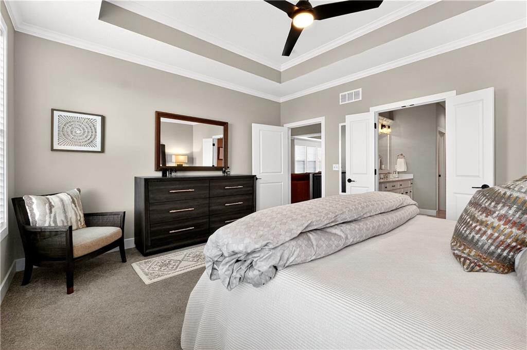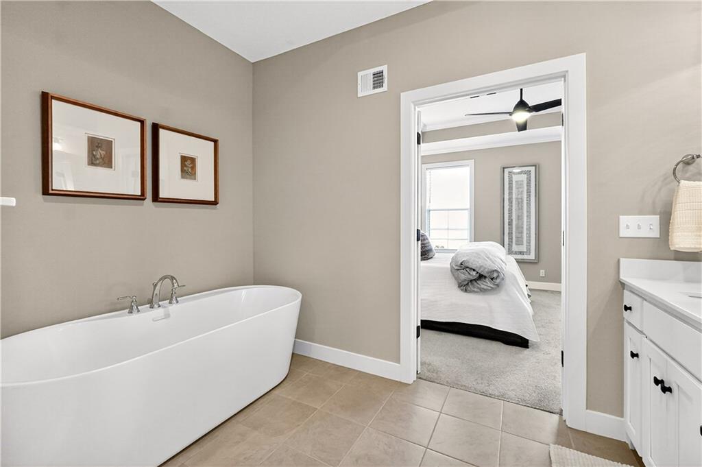 Beautiful one-owner villa in highly sought-after Bristol Highlands—meticulously maintained and truly move-in ready! This maintenance-provided home features upgraded landscaping, a full sprinkler system, and an inviting open-concept floor plan perfect for everyday living or entertaining. The light and bright kitchen offers white cabinetry, upgraded stainless steel appliances (including a gas range and large refrigerator), and flows seamlessly into the dining area. Enjoy hardwood floors throughout the kitchen, dining room, and living room. The living room features an upgraded stone fireplace, new TV (stays), and walks out to a fantastic covered deck overlooking the backyard. The main-level primary suite includes a spacious ensuite bath with separate tub and shower, tile floors, and a HUGE walk-in closet. A wonderful main-floor office—with its own full bath—can also function as a second bedroom. The finished lower level provides a generous rec room with TV (stays), two additional large bedrooms, a full bath, and excellent storage space. Additional highlights include a large 2-car garage with a brand-new epoxy floor. A must-see villa in a premier location—don’t miss this one!