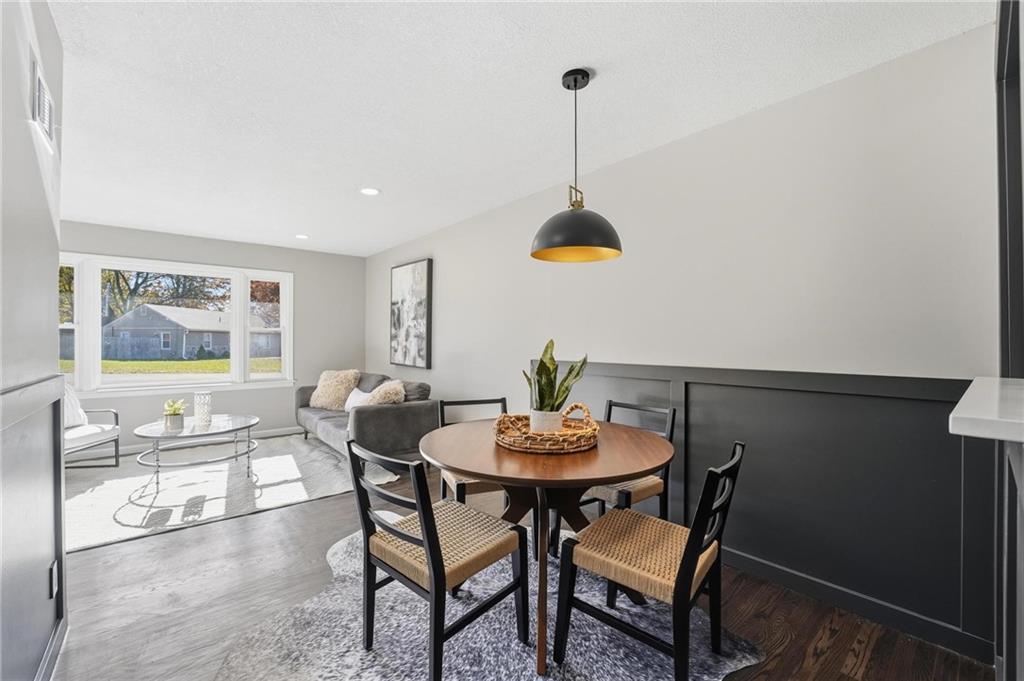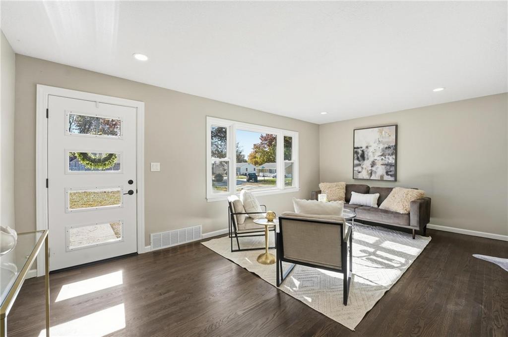 Beautifully Renovated Ranch in the Heart of the Northland! This fully updated 3-bedroom, 2-bathroom ranch-style home offering modern finishes, timeless design, and unbeatable convenience in Kansas City’s Northland. Recent exterior improvements include new siding, new windows, and a new roof, providing long-term peace of mind and excellent curb appeal. Inside, a bright and inviting living space features refinished hardwood floors, fresh neutral paint, and updated trim and hardware for a clean, cohesive feel. The stunning designer kitchen serves as the centerpiece of the home, showcasing sleek black tile accents with gold detailing, quartz countertops, open shelving, new stainless steel appliances, and upgraded cabinets and hardware. The dining area sits just off the kitchen for easy everyday living and entertaining. Both bathrooms have been fully remodeled, featuring modern tilework, stylish lighting, and high-quality fixtures. All three bedrooms offer comfortable space with updated finishes throughout. The expansive unfinished basement is freshly painted and ready for storage, a workshop, or future expansion. A one-car garage and large driveway provide convenient off-street parking. Outside, the freshly painted concrete patio offers a perfect spot for outdoor dining and relaxation. Located minutes from dining, shopping, schools, and major highways, this home blends style, comfort, and location into one incredible opportunity. Don’t miss your chance to own this beautifully updated Northland ranch!
