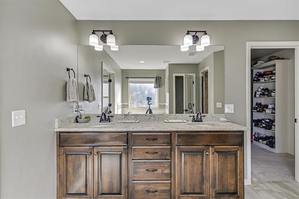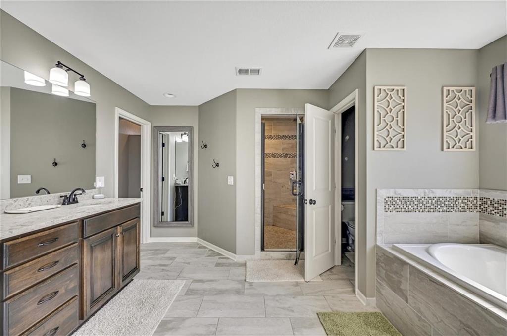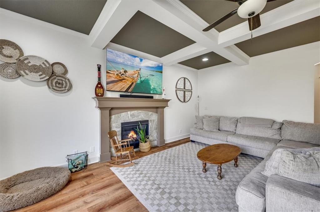 This large home has an open floor plan on the main level with lots of details. Great room boasts a fireplace, beautiful coffered ceilings and a large windows. Kitchen has an ample island and a walk-in pantry. The dining area walks out to the fenced backyard and covered patio. Upstairs bedrooms have attached jack and jill baths & walk-in closets. The primary bedroom has a tiled walk-in shower, soaker tub and huge closet with adjoining laundry room for your convenience! Lower level has an additional bedroom and a family room big enough to handle all your gatherings! Located just across the street from Lansing High School!