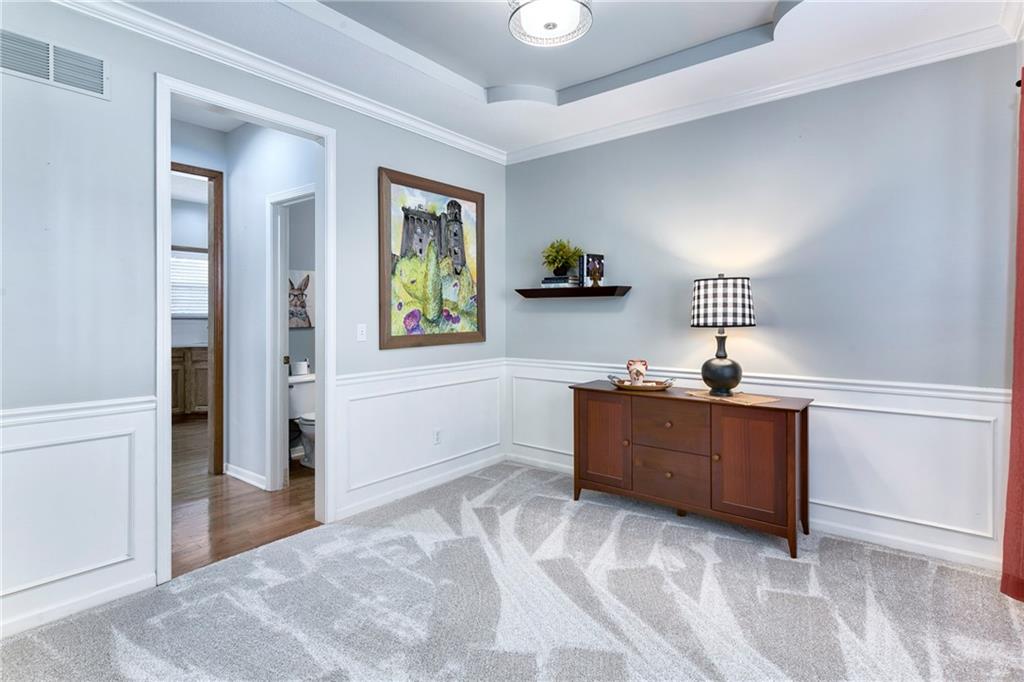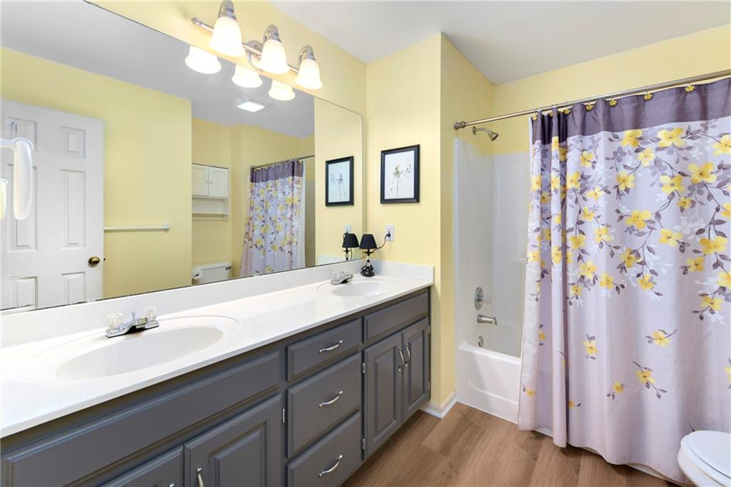 Well maintained one owner home. True 4 bedroom with finished walk-out basement. This home has had a pretty refresh which includes; new carpet on all 3 floors (including the switchback staircase), new quartz countertops, dishwasher (w/new faucet) and sink in the kitchen, stylish tile on the fireplace (gas logs..cozy for the holidays), some updated light fixtures (ceiling fans and hardware), much fresh (in neutral colors) interior paint and roof is only 5 yrs old and AC unit is 4 yrs old (for a more complete list see supplements). The laundry is conveniently located on the bedroom level for ease of use. There is ample closet (w/fresh paint) and storage space. There is an abundance of natural light which comes through the large windows in the living room and charming square breakfast areas...plus pretty bay windows in the formal dining room and primary bedroom...lovely style and a little extra space. Don't miss the plumbing is stubbed for a potential wet bar in the lower level. The home sits on a nice treed and landscaped Cul De Sac lot. This sought after community has a neighborhood swimming pool, walking trails and elementary school. Convenient highway access and close to shopping, schools and dining. Don't miss it...check it out