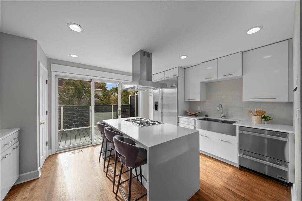 Plaza living at its finest! Situated in the heart of West Plaza, this beautifully updated 2BDRM / 3.1 Bath townhome offers 4 levels of living space, rare gated parking, and excellent location — all steps from the city’s best shopping and dining. Designer touches throughout include gorgeous hardwoods, a fresh neutral palette, and updated kitchen and baths. Main floor features a spacious living room with double-sided fireplace, formal dining, light and bright eat-in kitchen with quartz counters, designer tile backsplash, stainless appliances (including gas range/oven), pantry, and access to the newly refinished private deck. Updated half bath completes this level. The primary suite boasts soaring vaulted ceilings, refreshed bath with double vanity & shower, and walk-in closet. In-suite staircase leads to the third-floor loft—with floor-to-ceiling built-ins, beverage fridge, and private balcony—perfect for additional family room, reading nook, or versatile workspace. The second bedroom has double closets and its own ensuite bath with shower/tub. Laundry is conveniently located between the two bedrooms. The finished lower level adds more flexible living space, built-in storage, and a third updated full bath with shower. Three private outdoor spaces, in a well-maintained gated community, with secured parking (2 surface spaces plus your own garage)...truly a rare opportunity to enjoy updated, low maintenance living in one of Kansas City’s most desirable locations!