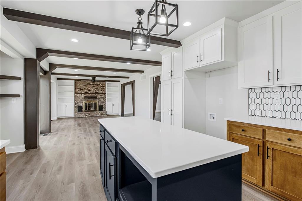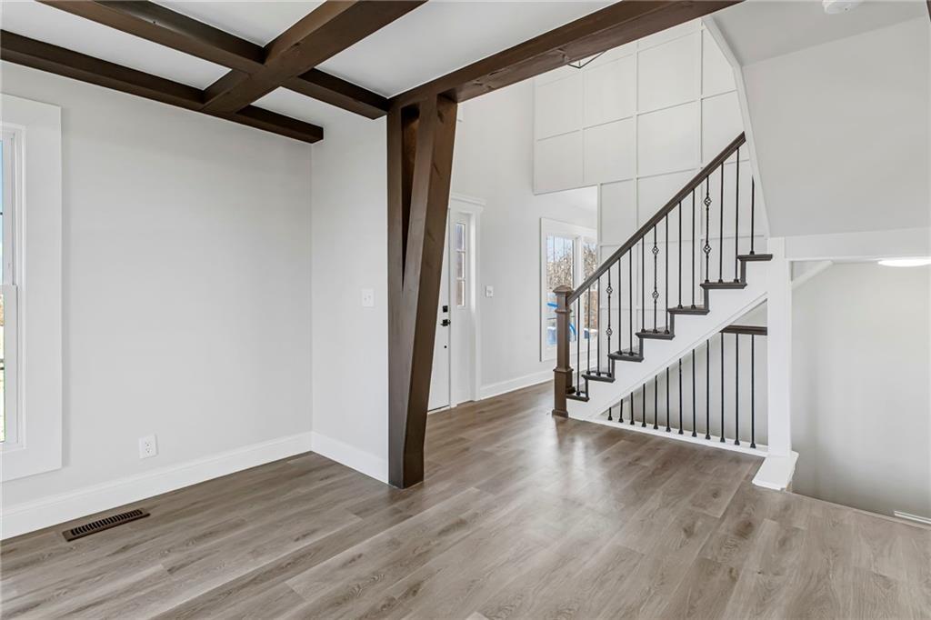 Completely remodeled and truly a showstopper, this stunning home sits on over 2.5 acres just minutes from town while offering the space and privacy you’ve been craving. From the moment you enter, you’re greeted by a dramatic two-story entry that sets the tone for the rest of the home. Warm LVP flooring, crisp white walls, and striking wood and beam accents create a modern yet inviting feel throughout. The family room features a cozy fireplace with custom built-ins, perfect for winter nights and showcasing art or décor. The open-concept kitchen, dining, and living areas are ideal for entertaining and flow seamlessly to a brand-new deck overlooking the expansive property. The kitchen is a true centerpiece with multi-tone cabinetry, high-end countertops, tiled backsplash, and stainless steel appliances. The main-level primary suite offers a spa-like bathroom with double vanity and generous built-in storage. Upstairs, you’ll find four additional bedrooms and two full bathrooms, providing plenty of space for family or guests. The finished basement adds even more flexibility, offering endless potential for a rec room, home gym, office, or additional living space. Enjoy the best of both worlds, just 10 minutes from town with the peace, space, and serenity of country living. This one checks every box.