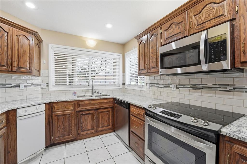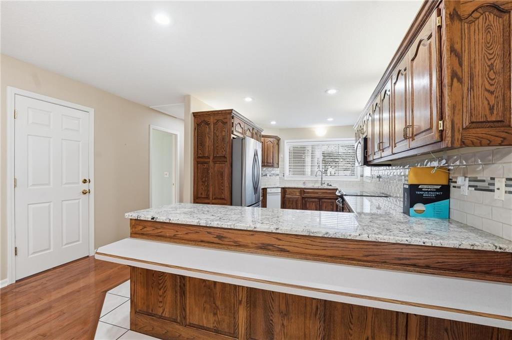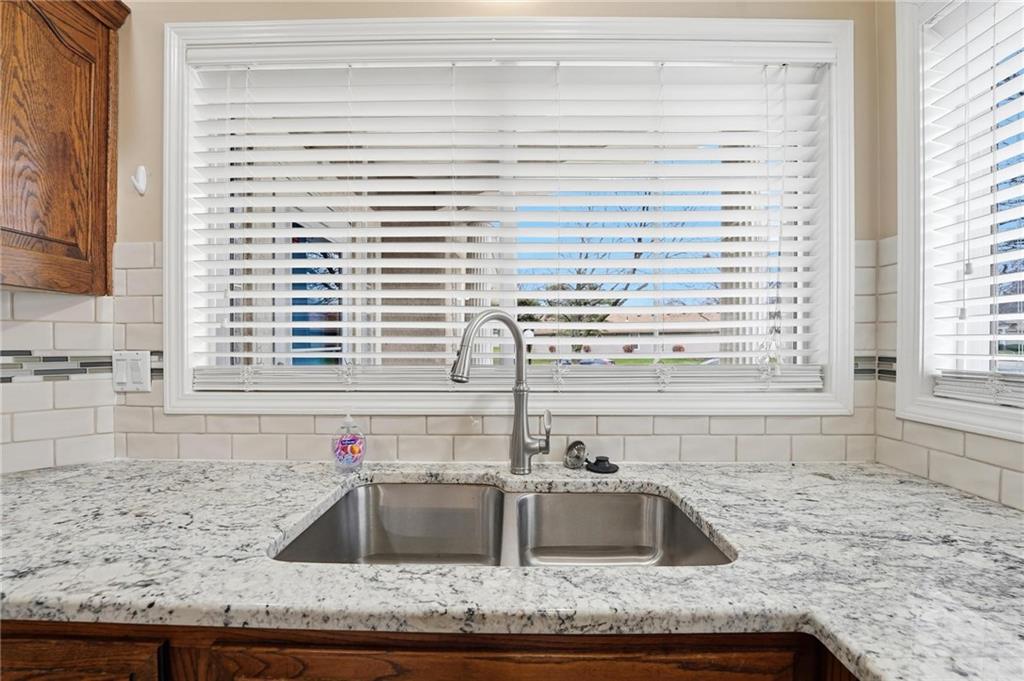 Hard to find maintenance provided home in Blue Springs! This one is open, clean and well-cared for with no steps to enter... featuring 2 bedrooms with private baths on the main level. Beautiful granite countertops in bathrooms and kitchen. Tile floors in bathrooms, Hardwood floors in main living areas and carpet in bedrooms. The primary bedroom is spacious with en-suite bathroom featuring jetted walk-in tub, separate shower and more! Tons of counter space and cabinets in the large, open kitchen featuring updated tile backsplash and all the stainless steel appliances in the kitchen stay! Skylights offer tons of natural light. Oversized garage is heated! Walkout basement features additional bedroom and full bathroom and rec room/entertaining space - with plenty of space left for storage, including a cedar closet! This one is a must see!