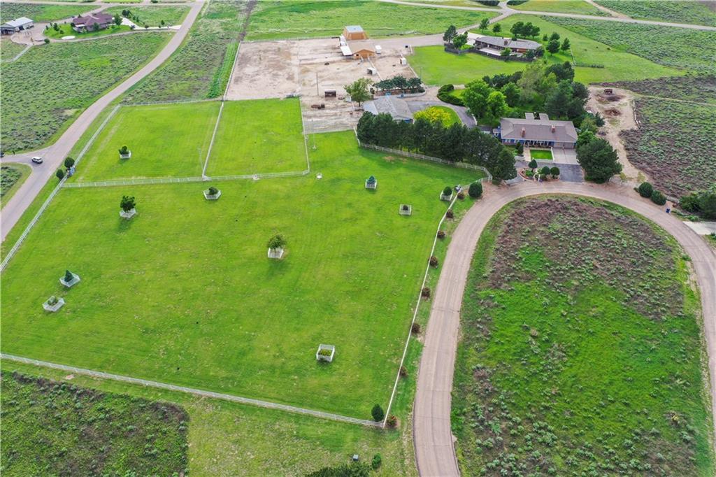 Looking for wide open spaces? This beautifully unique and private renovated country farmhouse rests in a private community on approximately 12 acres. Versatile home features spectacular sunrises and sunsets. Pella windows, two wood burning fireplaces, security system with cameras, gas boiler heat and air conditioner. An inviting and practical kitchen to delight your culinary senses. Large granite island with spacious counters, stainless-steel appliances, rich mahogany crown molding, high gloss brick floors and a double door pantry with ample storage. Cozy den with English design accents throughout. Romantic gardens and meandering pathways create a private sanctuary to relax and unwind. On property is 3500 sqft barn, 12 stalls and 5 paddocks; irrigated pasture with two wells. This property was surveyed and could be split three ways to make it your own! Low yearly HOA. Near the regional airport and five minutes away from the hospital. World class hunting for pheasant and deer.