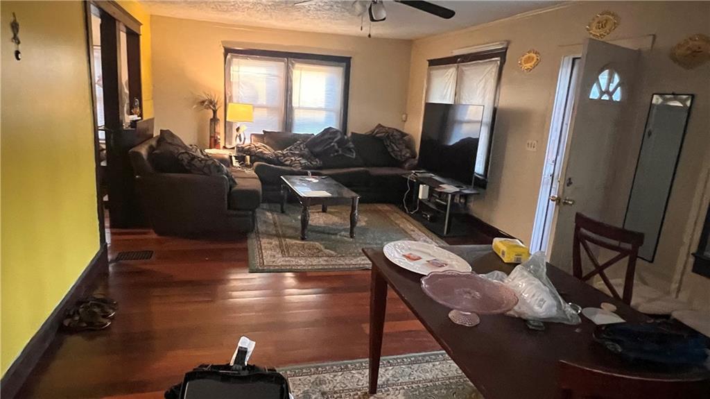 Main floor features a spacious living room, formal dining room, kitchen, and a full bathroom. The second floor includes three bedrooms and an additional full bathroom. Open floor plan, with wood floors on main level. Vinyl exterior. You will love the easy highway access and extra land that comes with this property!!! Perfect owner occupant or investment.