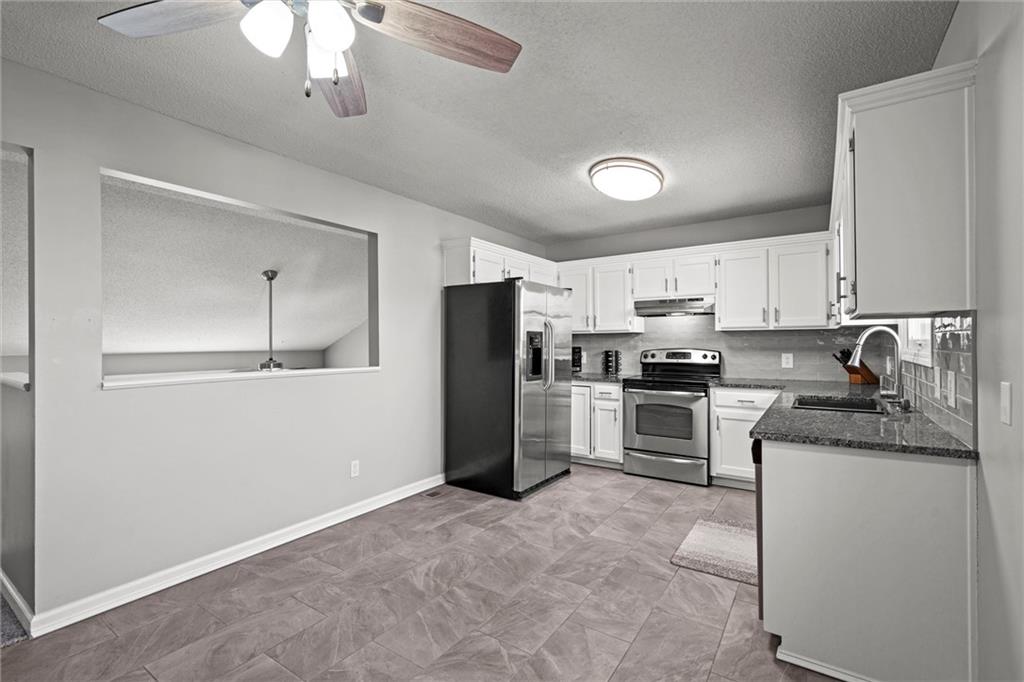 The moment you open the front door, the bright, vaulted living room steals the show. Natural light pours across the space, highlighting a layout that feels open, comfortable, and instantly the house you'll want to call home. The kitchen is finished with white cabinetry, granite countertops, stainless steel appliances, and a modern tile backsplash, flowing into the dining area and offering an open view of the living room below. The hallway bathroom has direct access to the primary bedroom and includes a dedicated sink and vanity inside the suite—an ideal setup that adds privacy and everyday convenience. Two additional bedrooms complete the upper level, while the lower level offers a generous rec room that’s perfect for a second living space, hobby room, or home gym, along with a combined laundry and full bath. Outside, enjoy an elevated deck overlooking the spacious fenced yard, plus a patio area ready for grilling or gatherings. Beyond the home itself, the location can't be beat! Tonganoxie Elementary and Middle School are just around the corner, and everyday essentials like parks, grocery stores, and downtown shopping are just minutes away. It’s a spot where daily life feels organized, connected, and comfortable.