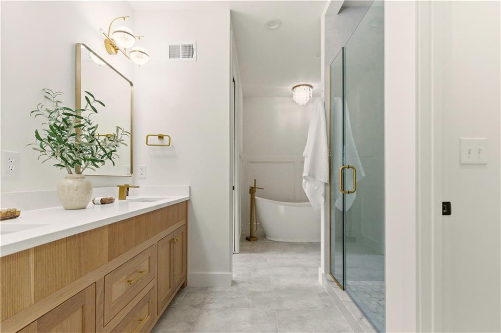 Beautiful new 5-bedroom home in the heart of Prairie Village. The layout is designed for everyday living, with a main-floor primary suite, two bedrooms upstairs plus an office or flex room, and two bedrooms in the finished lower level. The stunning two-story great room allows for natural light providing an open and bright feel. Thoughtful upgrades are woven throughout the home: including 8-foot doors on the main level, a striking two-story family and dining room, white oak flooring and cabinetry, and a beautifully designed kitchen with an oversized island. Enjoy the covered deck, privacy fence, laundry hookups on all three levels, full sprinkler system, and a convenient washing station/mudroom. The fully finished lower level expands the living space with a full entertainment area and bar. The location keeps you close to Mission shops, Meadowbrook Park, and The Village, while still giving you a quiet, neighborhood feel and easy access to daily commutes.