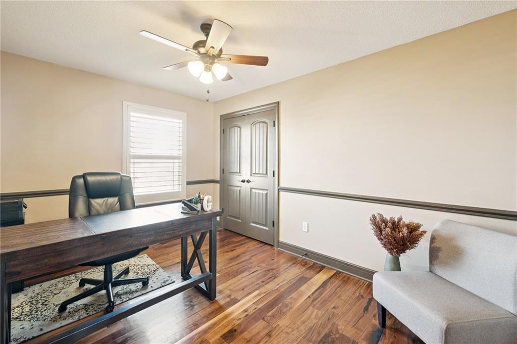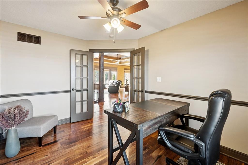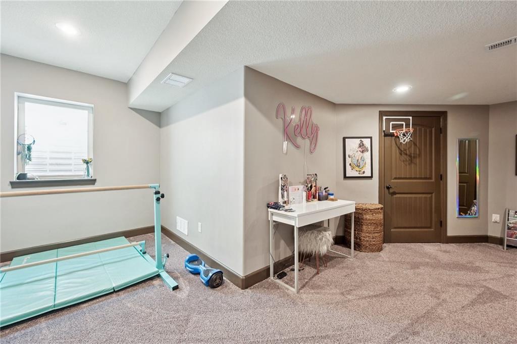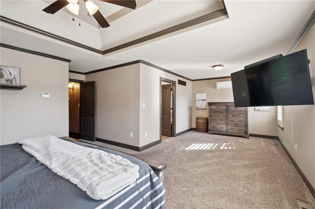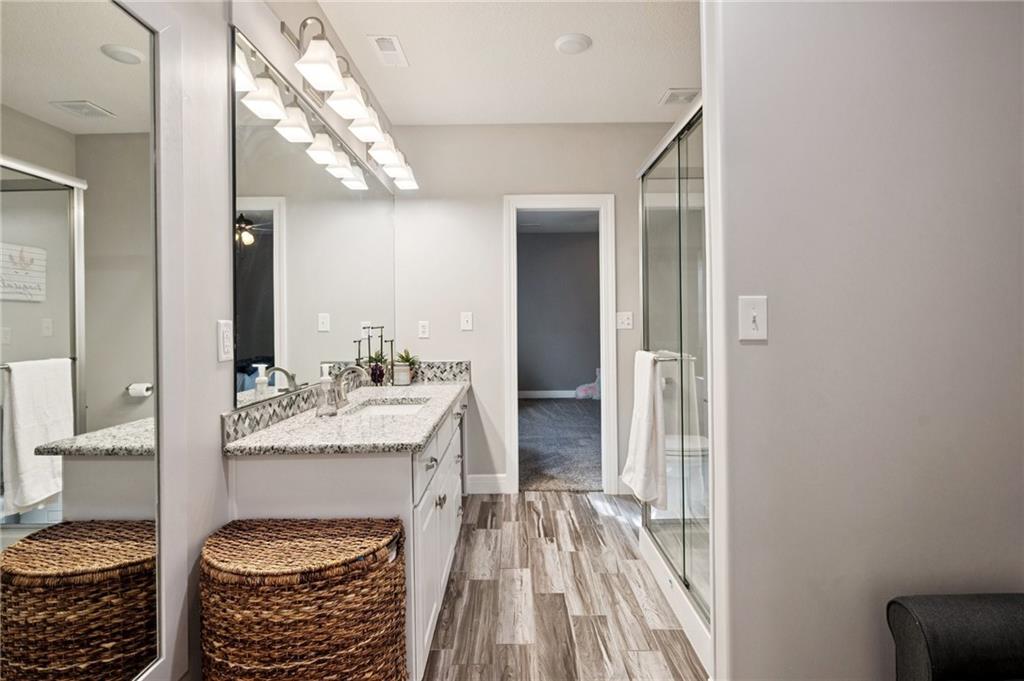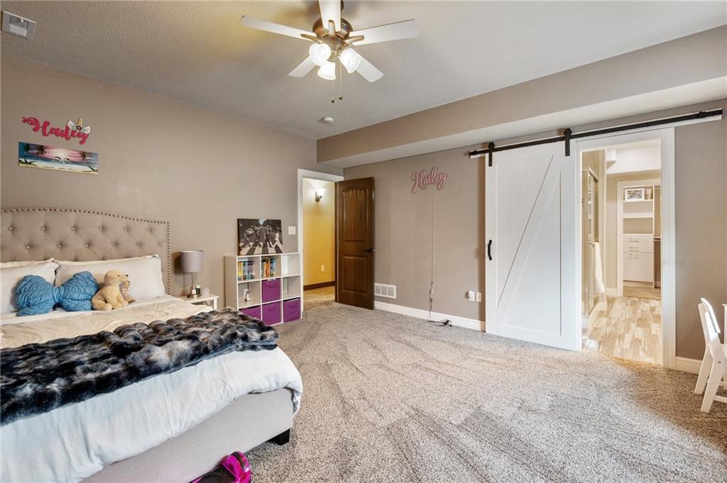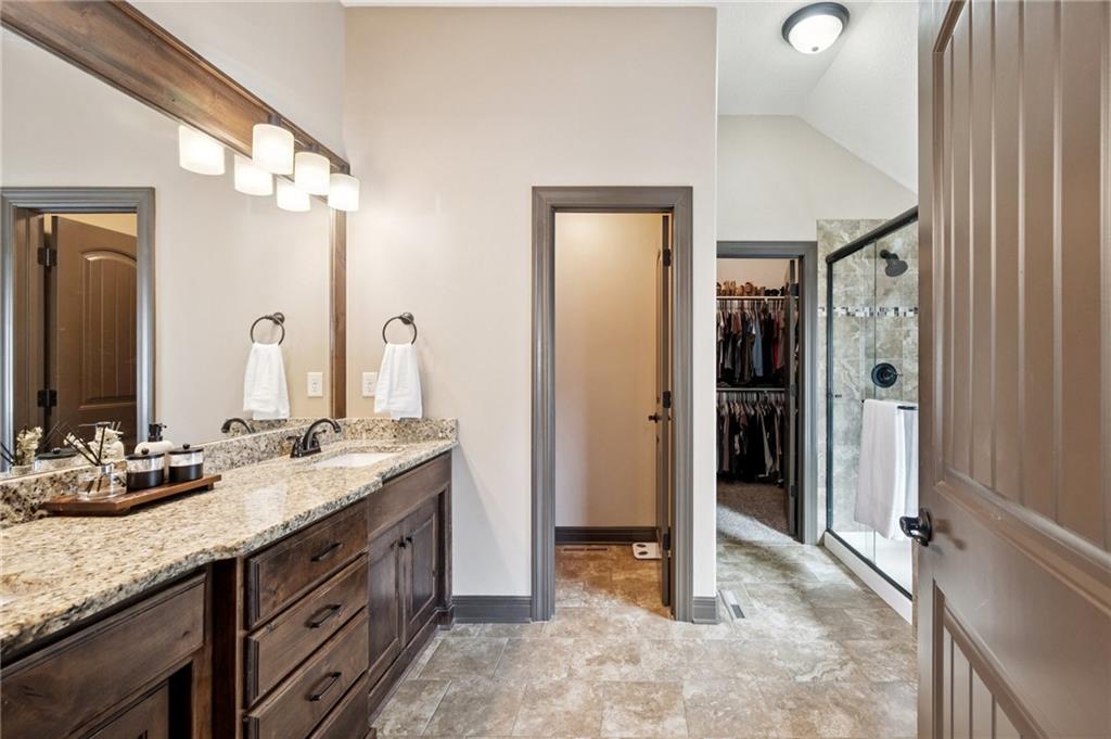 Amazing 5-bedroom, 4-bathroom ranch home located in the quiet Estates of Chapman Farms! This spacious, open-concept layout is designed for comfortable living and elegant entertaining. The main floor features a formal dining area, a large kitchen with a walk-in pantry, stainless steel appliances, gas cooktop, and a generous island overlooking the expansive great room with a cozy corner fireplace. A bright breakfast nook completes this inviting space. The main level includes a bedroom perfect for a home office, a second bedroom, and the primary suite—complete with a comfortable sitting room, a luxurious bathroom offering a separate glass shower and soaking tub, and a walk-in closet with abundant storage. The lower level is made for entertaining, showcasing a massive recreation room with a full wet bar and stylish accent wall—ideal for hosting parties, game nights, or movie marathons. Two additional bedrooms and two bathrooms provide plenty of room for guests, with extra unfinished space ready for storage, a hobby room, or a home gym. Step outside to your backyard oasis featuring a covered porch with a stone fireplace, plus a stunning in-ground pool and hot tub—perfect for relaxing or entertaining.