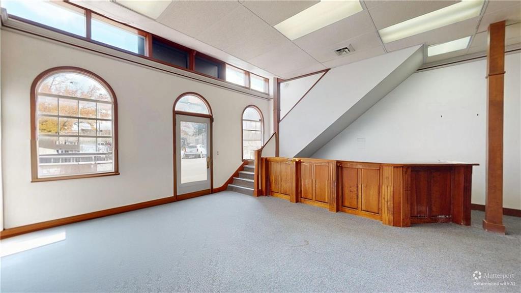 Opportunity awaits with this two-story, 3,300+ sq ft commercial building, boasting decades of history right in the heart of Nevada, MO's Downtown Square. Located just across the street from the Vernon County Courthouse, 123 N. Main offers exceptional potential for your thriving business or as a strategic investment property. The main level features over 1,800 sq ft of finished space, including a reception area, conference room, two large offices, storage, and two half baths. An incredible 1,247 sq ft Mezzanine provides ample storage to the west. A dedicated south staircase leads to the upstairs level, offering an additional 1,500 sq ft with a huge reception area and three additional offices. The property benefits from excellent natural light and is a must-see in a premium location!