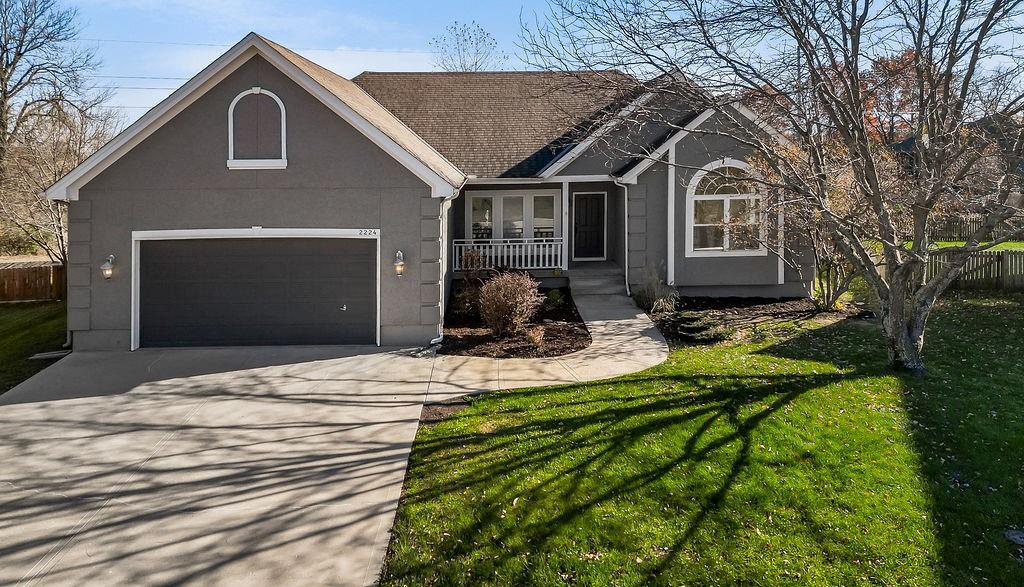 Welcome home to this spacious ranch-reverse in Blue Springs, thoughtfully designed with room to live, gather, and relax. Step inside to an inviting open floor plan featuring a bright Great Room with a cozy fireplace, built-in speakers, and abundant natural light. The kitchen opens beautifully to the main living area, offering a large center island with breakfast bar, walk-in pantry, and granite counters—plus upgraded trim and gleaming hardwoods that carry through the kitchen and dining space. The breakfast area, complete with a stylish tray ceiling, walks out to a covered patio perfect for morning coffee or evening unwinding. The primary suite is a true retreat with its vaulted ceiling and striking Palladian window. The spa-inspired bath includes elegant columns, a whirlpool tub, tiled walk-in shower, and a generous walk-in closet. The main level also includes two additional spacious bedrooms, a full hall bath, and a convenient laundry room. Downstairs, the finished lower level expands your living options with a large rec room (also with built-in speakers!), a full bath, and two more true bedrooms—ideal for guests, teens, or office space. You’ll also find plenty of storage, a brand-new water heater, AND a 2 year old A/C for peace of mind. Outside, enjoy a fully fenced backyard backing to beautiful, serene nature views. It’s the perfect blend of privacy and outdoor living! Dive into the perks of the HOA, including a sparkling pool, fun play area, and scenic neighborhood trails! Come see!