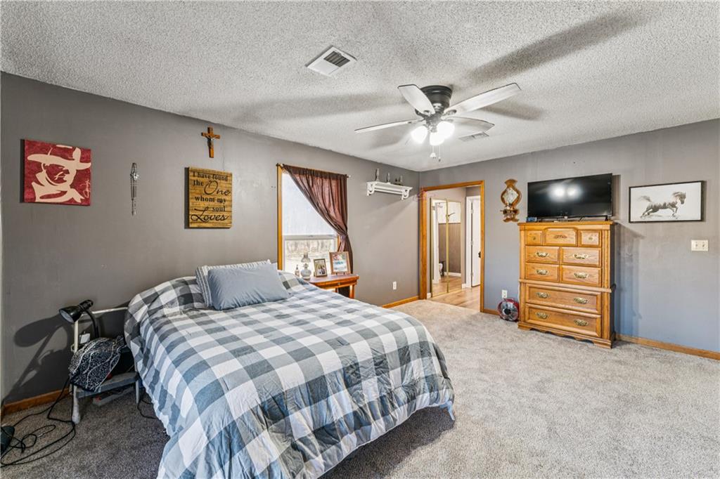 This inviting property offers comfort, space, and a peaceful country setting just one mile from town. The home features an open floor plan, pellet wood heat, and electric A/C for efficient year-round living. With 3 full bathrooms and 4 bedrooms, one is a non-conforming bedroom in the walkout basement, there is plenty of room for family, guests, or flexible use. Outdoor living shines here, with a 900-square-foot wraparound deck on two sides and a covered deck on the north side, creating several great spots to relax and enjoy the view. The property is horse-ready with a fenced paddock, and mature trees add privacy and charm throughout the acreage. Inside, the primary suite features a spacious custom shower with a rain shower head. The main level includes two full baths for convenience. The walkout basement features a large family room with a pellet stove, ideal for cozy evenings or gatherings. A 22x40 detached three-car garage and shop with electric provides excellent storage and workspace options. This property offers a balance of country living and quick access to town. It is ready for its next owner to make it their own.