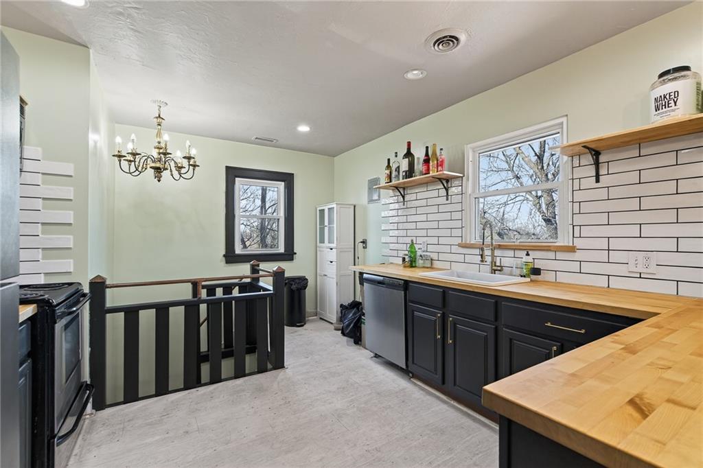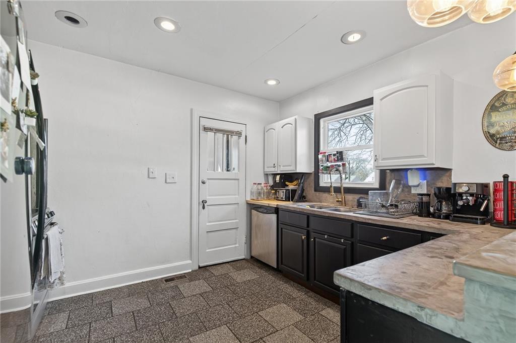 Come check out this beautiful multifamily home with TWO open concept kitchens, original charm, updated bathrooms, and optimal location near highways, public parks, the Davidson elementary school, and surrounded by friendly neighbors! This two story home is evenly split for a two bedroom one bathroom apartment on each floor with a two-car side entry garage and a LARGE storage area that could host the third unit! BONUS income potential! The basement is home to the laundry area shared by both tenants, a storage area, half bath, and a sauna. The back of each apartment is connected by a staircase that leads to the fully fenced backyard complete with a fire pit and lush grass. Charm is intact with both units showcasing the original doors, floors, woodwork! Upgrades include newer windows, kitchen layouts, kitchen floors, and fun features like concrete countertops and subway tile backsplash. MOVE RIGHT IN and obtain owner occupied financing with as little as 3% for your downpayment - or retain existing tenants. Up to you since both units have flexible month to month leases in place. Don't miss this opportunity to own a multifamily home in the heart of KC! A true slice of KC's history in the Lang Subdivision.