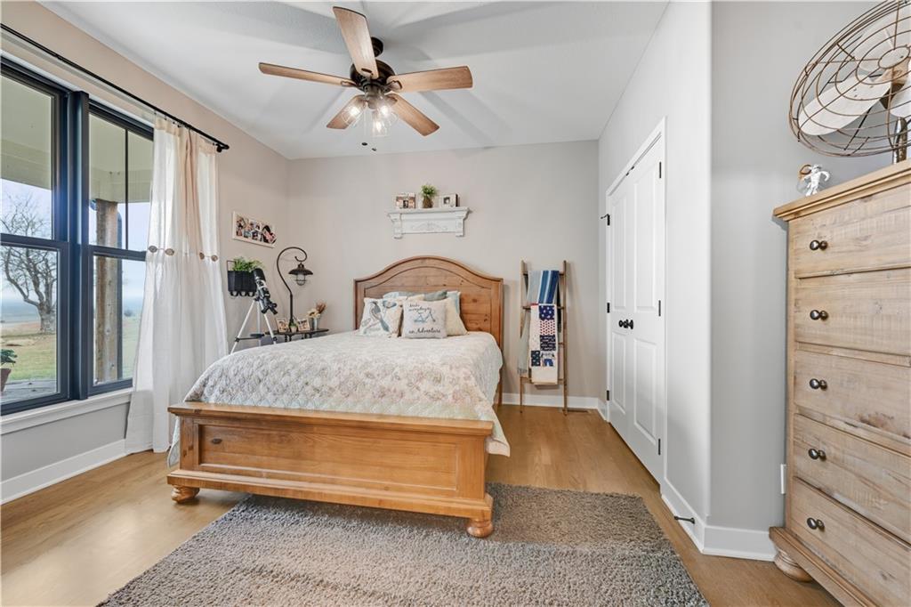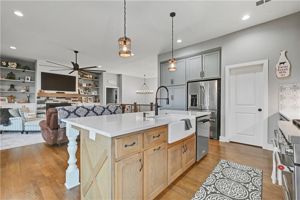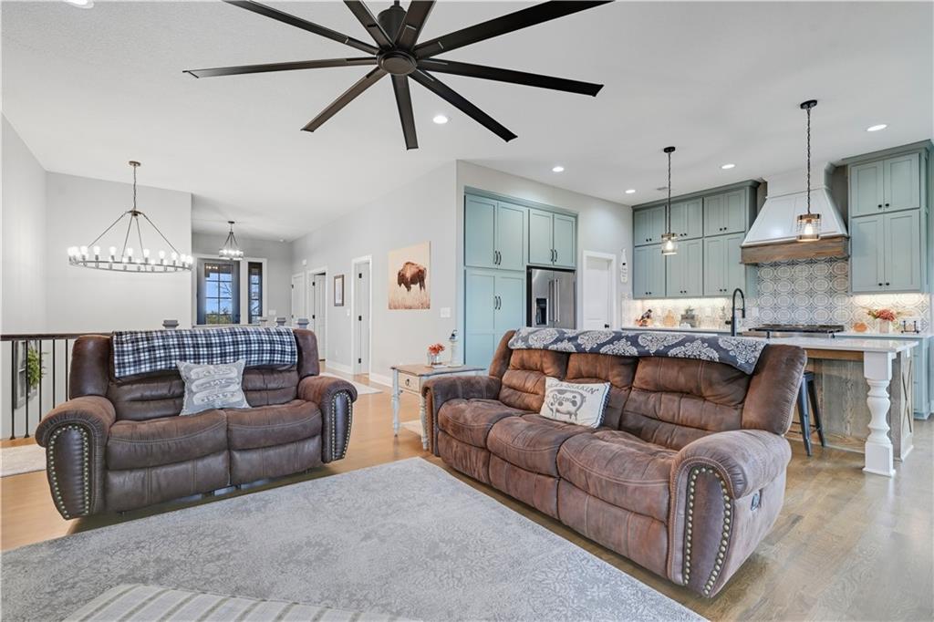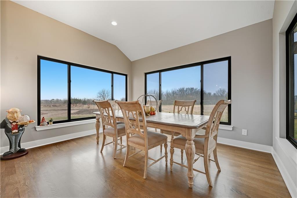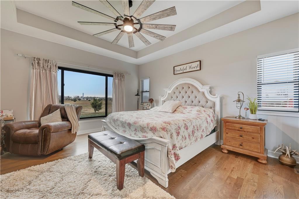 Your Dream Home Awaits! This gorgeously appointed 4 Bedroom 3 and 1/2 Bathroom Reverse Story 1.5 is better than NEW! Your Future Home offers an open concept main level with a grand foyer, second bedroom/office, Chefs Delight Kitchen, Dining Space, Great room, Primary suite, Laundry room, mud room and oversized garage. The Charming kitchen offers a HUGE walk-in Pantry, 6ft island with Quartz countertop, loads of storage, 36" Gas stove, and Painted Custom cabinetry. Your Great room offers a wood burning fireplace and double sliding doors that open to the covered porch to take in your country views. Enjoy retreating to your spacious primary suite where you can relax in your walk-in shower with custom tile. Your magnificent walk-in closet connects conveniently to the laundry room. Head down stairs to your sizable recreational room that connects your exercise room, bonus room, and 2 additional bedrooms joined by a Jack & Jill bathroom. Need storage? You've found it. The amount of storage this home offers is substantial. Enjoy the space your acreage offers for you to enjoy. Fish in your 1/3 acre pond, store your toys in the 40x60 shop/outbuilding with concrete & electricity or turn it into a barn for horses or other animals, start a large garden, your options are almost endless. Easy highway access. Only 14 minutes from Louisburg for shopping and restaurants, 8 minutes from Linn Valley Lakes, and 21 minutes La Cygnes Lake. Tour this home today before you miss out! Professional photos taken tomorrow.