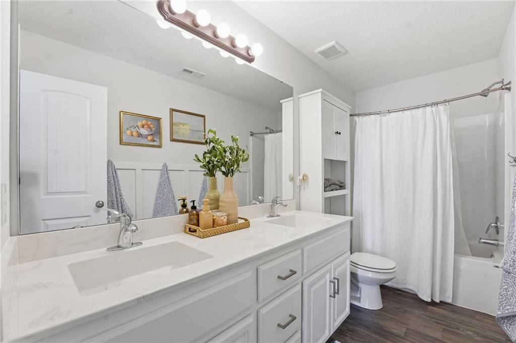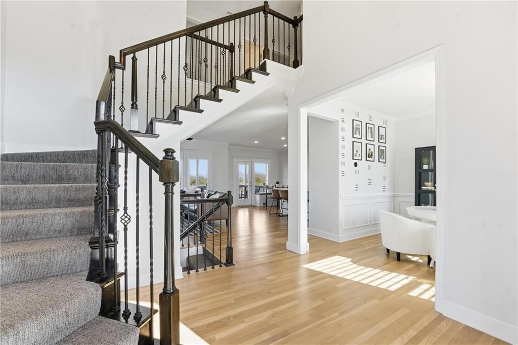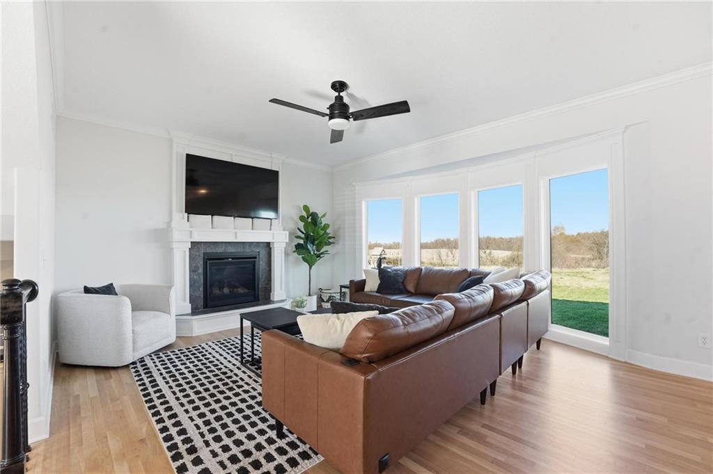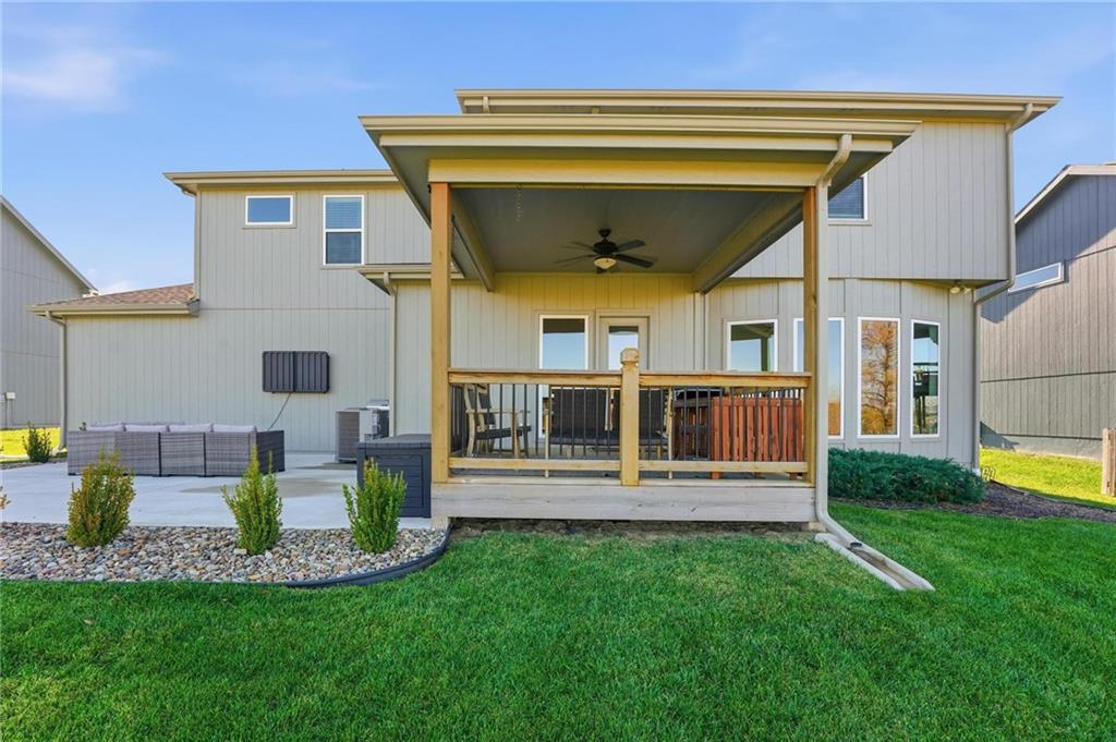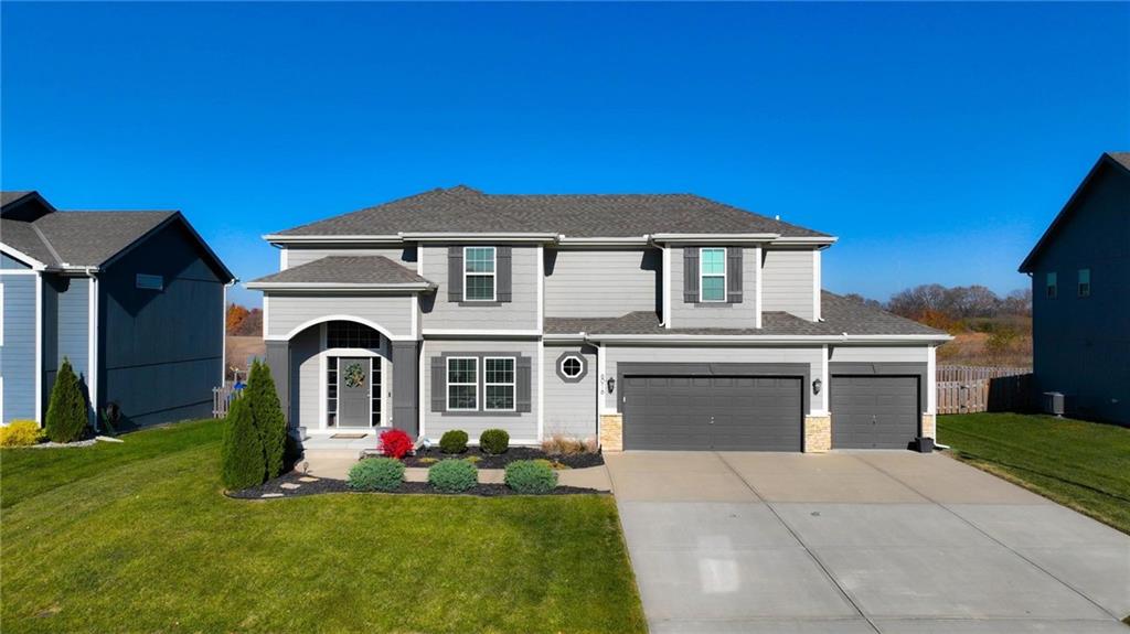Pristine and "like new", nestled against farmland-this spotless 2 story has it all! Open main floor with 2 story entry, gas fireplace, mud room, built-in banquette w/custom table, walk-in pantry, and wood floors throughout. Expansive windows showcase the peaceful view and outdoor living space featuring a covered wood deck and new 22x20 patio w/weatherproof covered TV. The roomy 2nd floor offers walk-in closets, feature walls, main bath with double vanity, and laundry room. Retreat to the private primary bedroom with soaking tub, separate shower, double vanity, and walk-in closet. The possibilities are endless in creating your dream space in the lower-level w/bath stub and Egress window. Quietly located "off the beaten path", yet close access to freeways and shopping. This is one has it all!