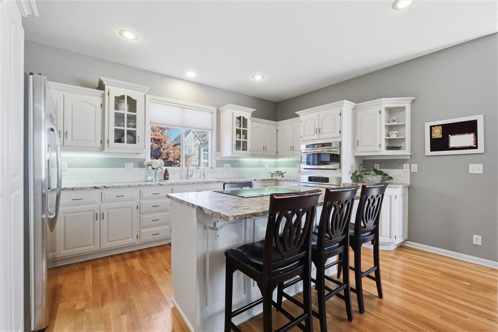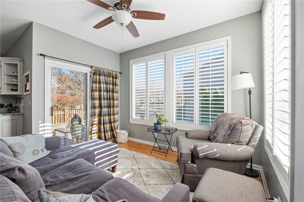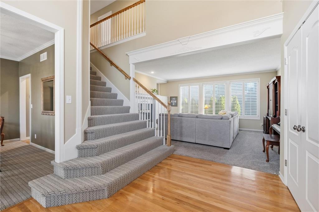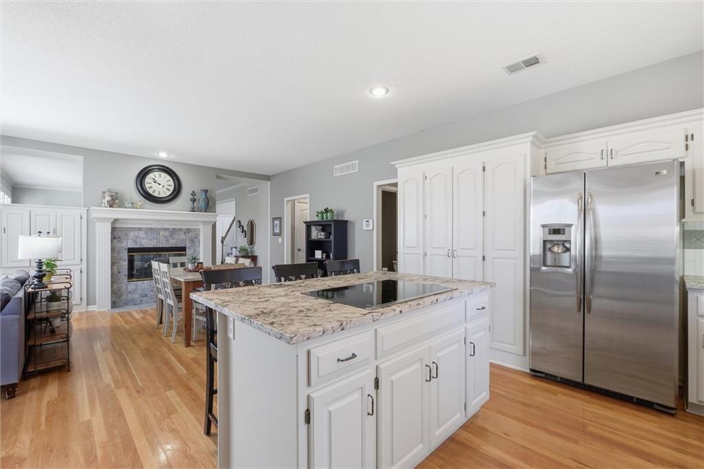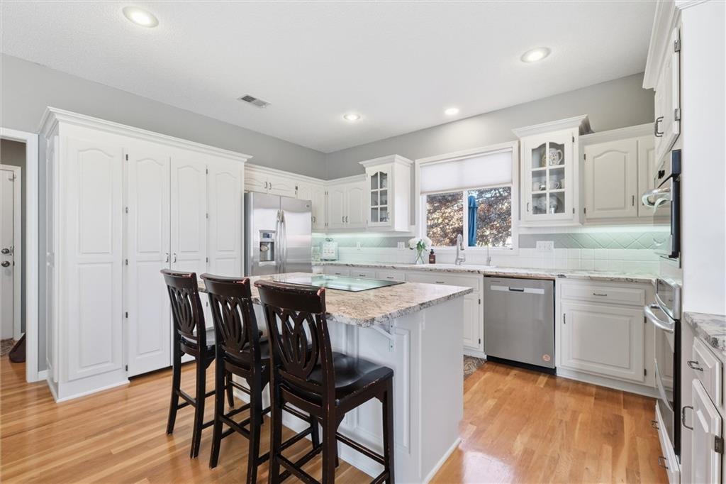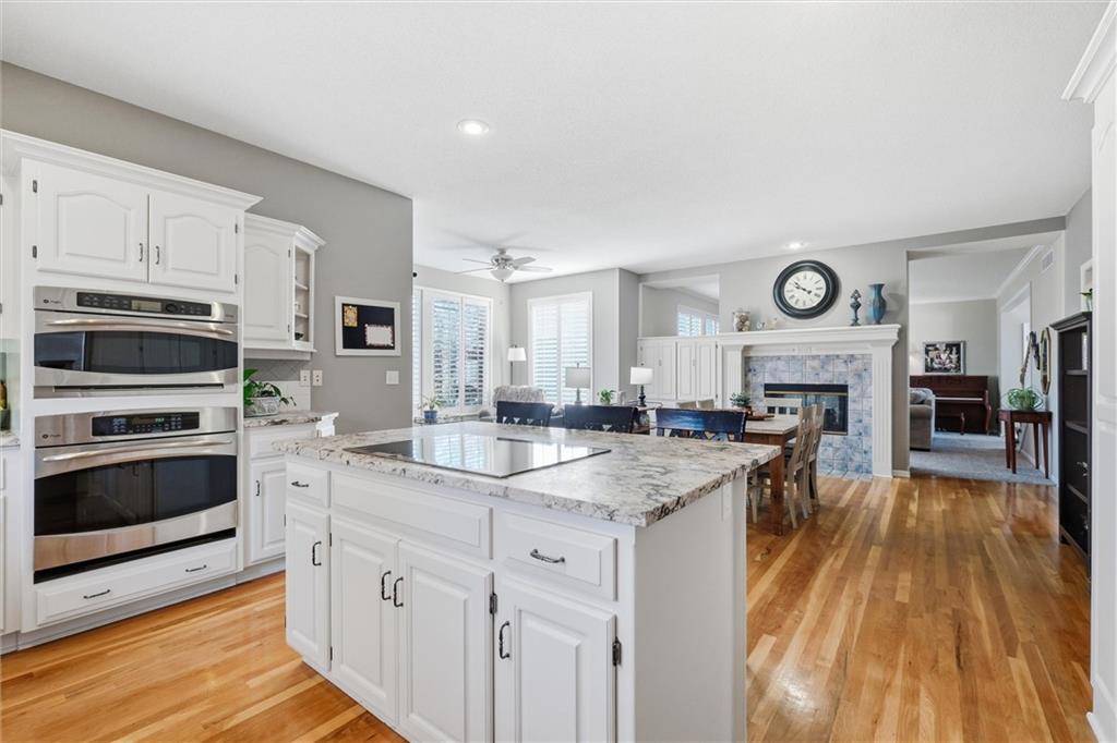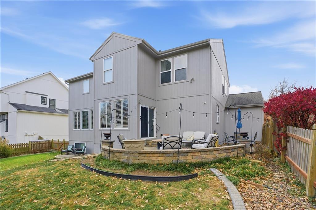 Welcome home to this Hampton Place stunner, a beautiful two story in the heart of Blue Valley. This home is perfectly located, walking distance to schools and neighborhood amenities. Inside, you’ll find a bright and updated white kitchen, huge walk-in pantry and beautiful hardwood floors. Multiple main floor living spaces are connected with a cozy see-through fireplace. The layout is spacious and functional, offering plenty of room for everyday living and entertaining. Upstairs is a beautiful primary bedroom connecting to large ensuite bathroom and walk-in closet. Upstairs offer three more generous sized bedrooms and two full bathrooms. The daylight basement is the perfect bonus space, complete with a wet bar and convenient half bath. Outdoors, enjoy a fully fenced yard and a large patio ideal for grilling, gatherings, and wide-open play. With a brand new AC unit in 2025, newer paint inside and out and updated kitchen, this home is well-cared-for and stylish, checking every box!